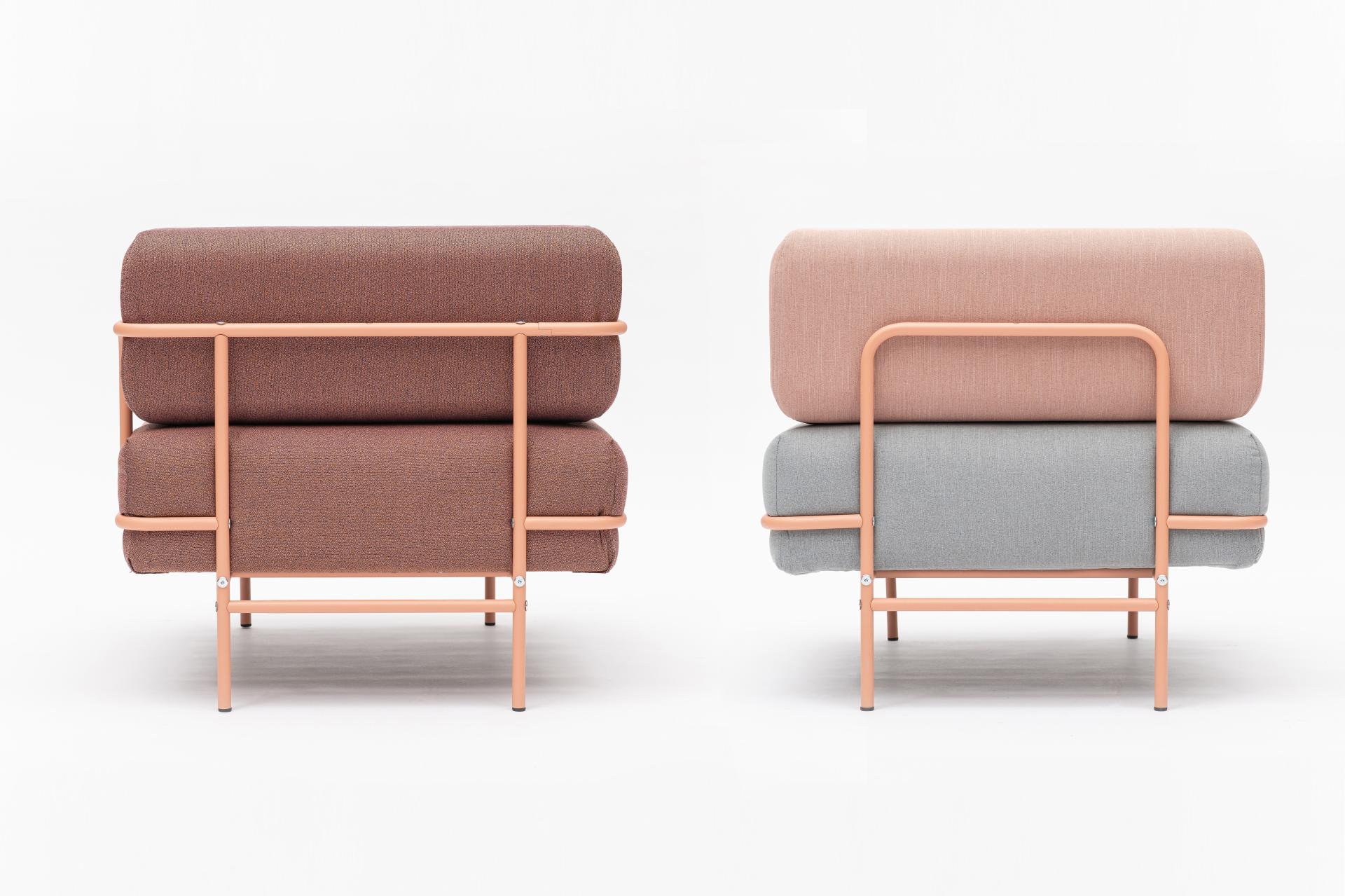 Ensuring the stability of the thin tubular frame, in addition to aesthetic, was an important area of development: we dived deep into material research. I am happy that we were able to use recycled and natural materials in several places both in terms of upholstery fabrics and fillings. Rotte’s plant is absolutely well-equipped: powder coating, for instance, is carried out by automated lines that circulate the surplus back. The combination of modern innovation and traditional technologies is a guarantee of high quality.