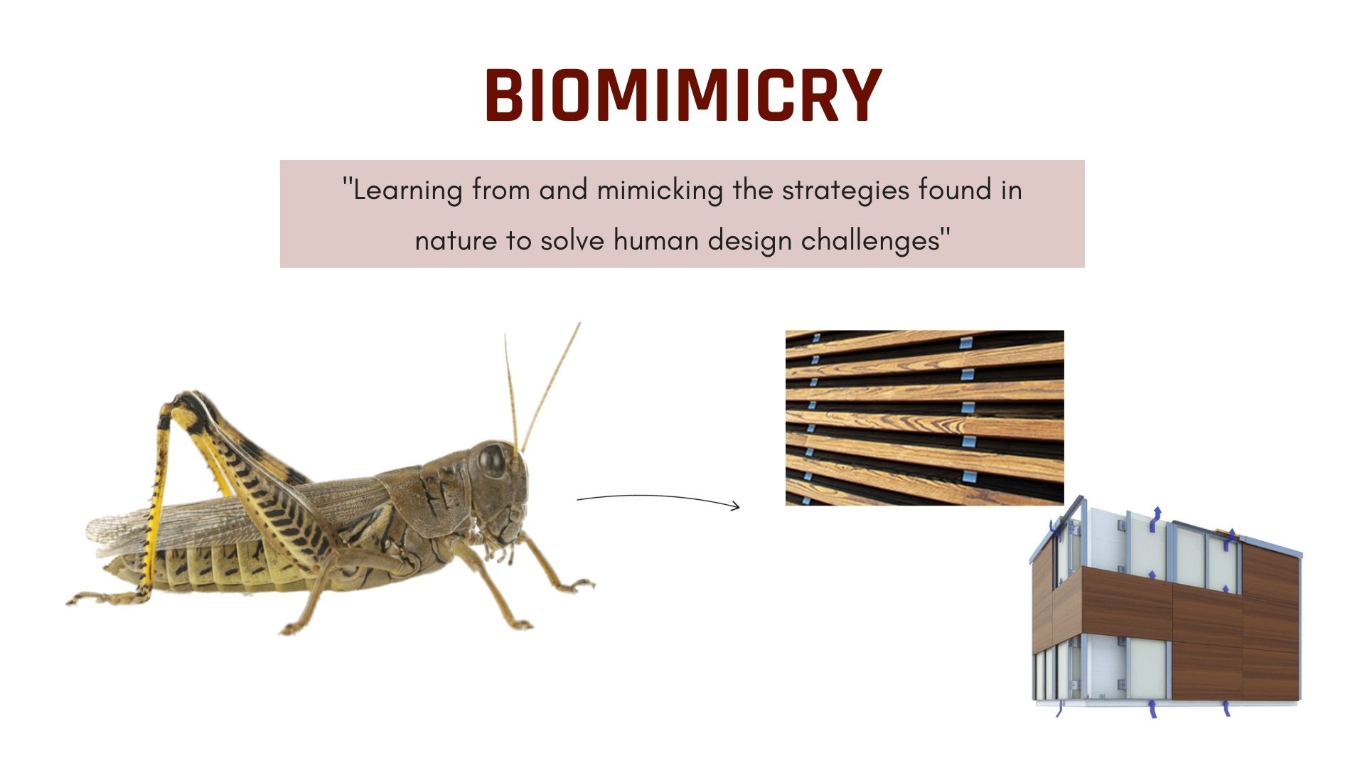 The first innovative character of the concept is regarding "Biomimicry". This term can be described as "Learning from and mimicking the strategies found in nature to solve human design challenges". Nowadays, biomimicry is applied in many examples of human's daily life, such as velcro and aeroplanes. These strategies have also been extended to the built environment field and bring ample opportunities for innovation in the engineering and architecture design discipline. Thereby the following idea: using the respiratory system of cricket as a design to enhance thermal performance, flexibility and reduce energy consumption.