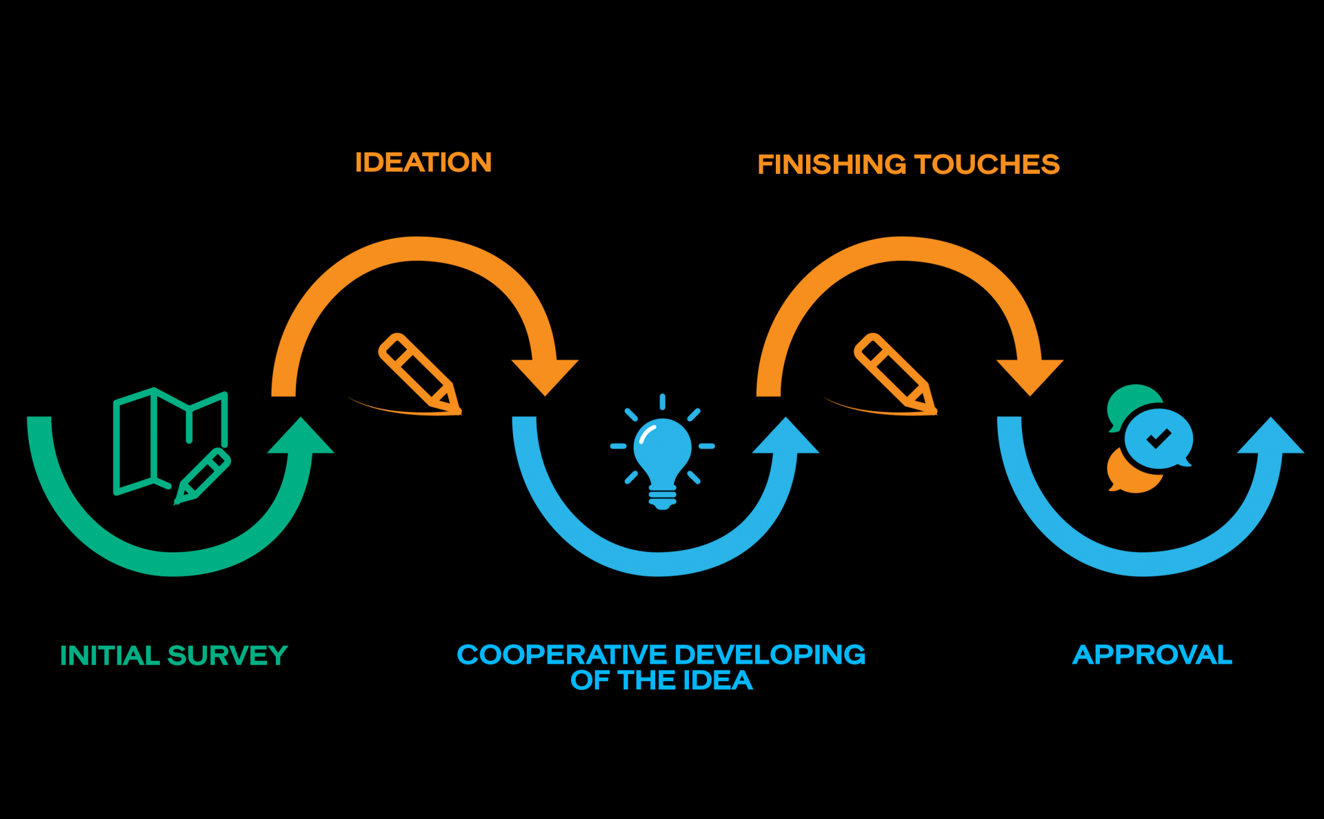 Nordic Works’ bold ideas and concrete solutions serve as conversation starters. That is why we produce large amounts of quick illustrations during Design Sprints. Illustrations and communication have a central role in transparent and interactive planning.