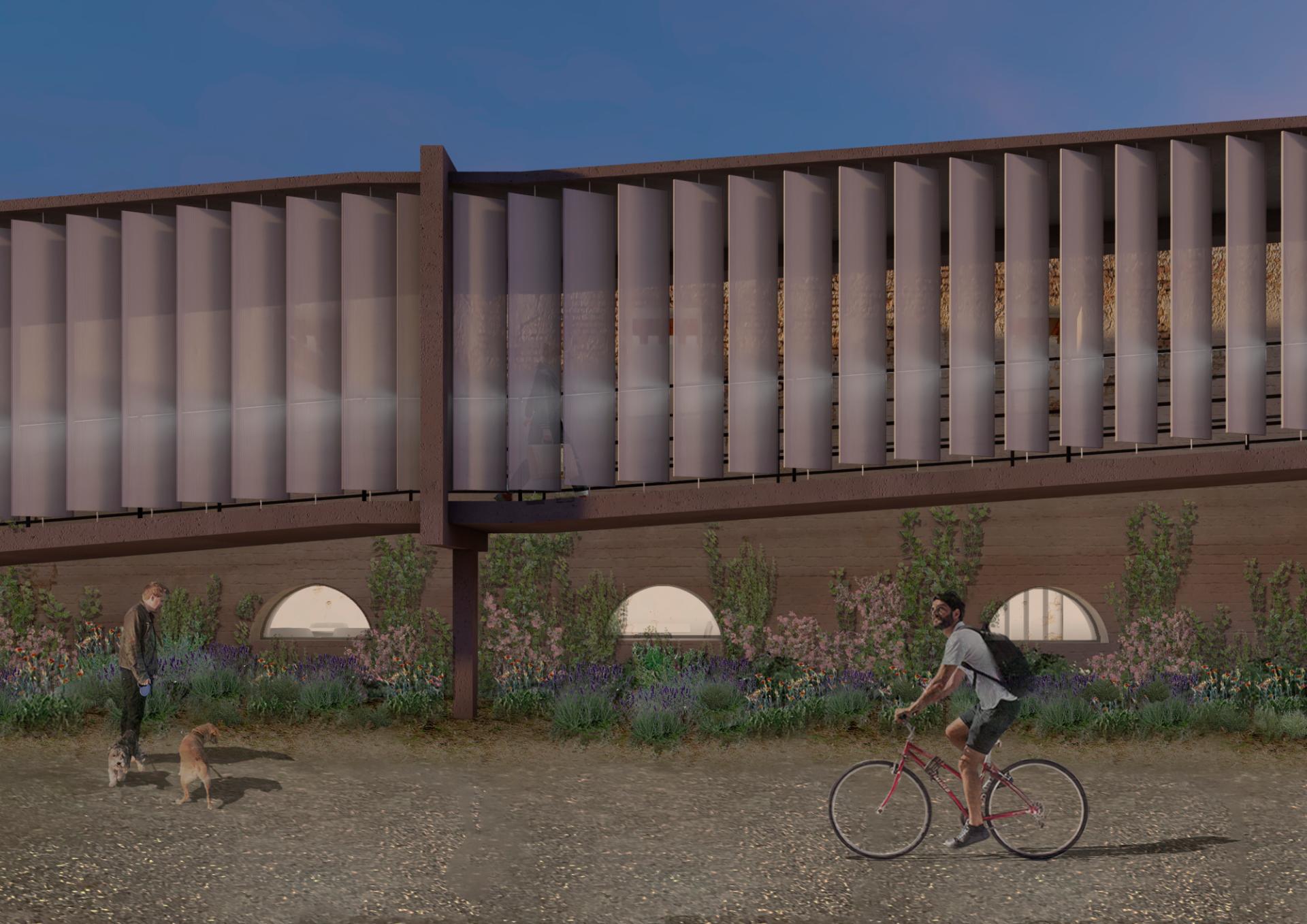 Our design takes place in the Meridiana building, which is part of an ancient Villa called ‚Villa Arconati’ in the outskirts of the north of Milan in Italy. When we think of this complex, it comes to mind as a very quiet and reserved place which really speaks for itself with all its history and the particular events that happened there in the past. Nowadays though, despite all its historical background, the Meridiana stands as an empty building which is just becoming more and more neglected over the years. The aim of our project at the Meridiana is to create an interesting and functional working place which involves the visitor through the actual historical building, highlighting it and making it as open and perceptible as possible. With this assumption in mind, we also actively decided to create a ramp along the whole north facade to connect the three levels of the project, instead of just using a common elevator, which was the actual task given, through our studio which took place at the Politecnico di Milano. The ramp is formed in its northern elevation by polycarbonate semi-transparent brise-soleils, placed slightly bevelled to allow or block the view, depending on the direction in which the visitor is walking. This ramp is therefore not only a useful tool to guide the visitor through the historical building in a respectful and utterly honest way, but it also represents an activator of a new experience in the whole complex and a key element in the design development of the project. The ramp is fully detached from the building, creating interesting details in the key points where the ramp and the building interact. That way, this absence of structural connections between the ramp and the body of the Meridiana highlights the respect shown towards the building, main aim of this project. The restoration of the existing structure was essential, but the intend was to keep the essence of the building alive, showing its uniqueness and strength.