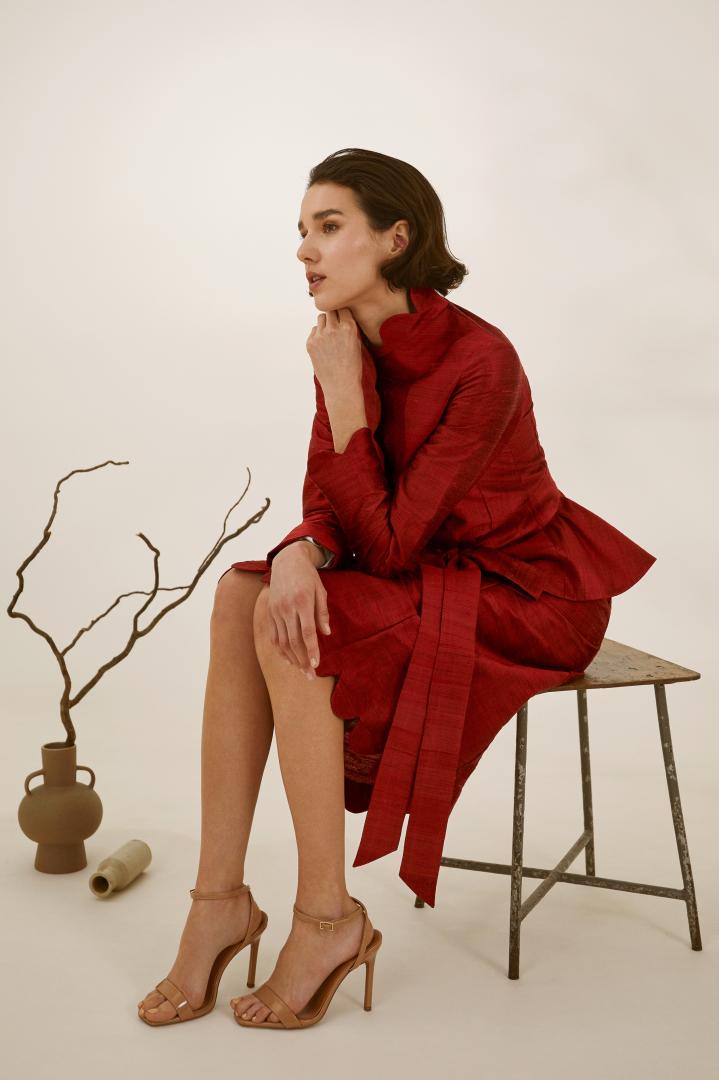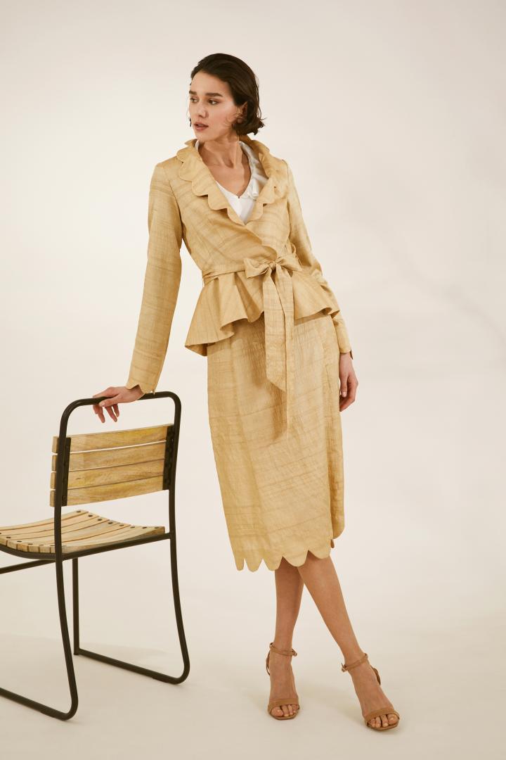 Through thorough research of the traceability of fabrics and the use of proven natural and durable fabrics House of Kerry's new collection is highly sustainable and provides a range of options for the conscious consumer. The use of handwoven fabrics -mulberry silk and banana fiber from India and Cambodia supports women's empowerment through work.
