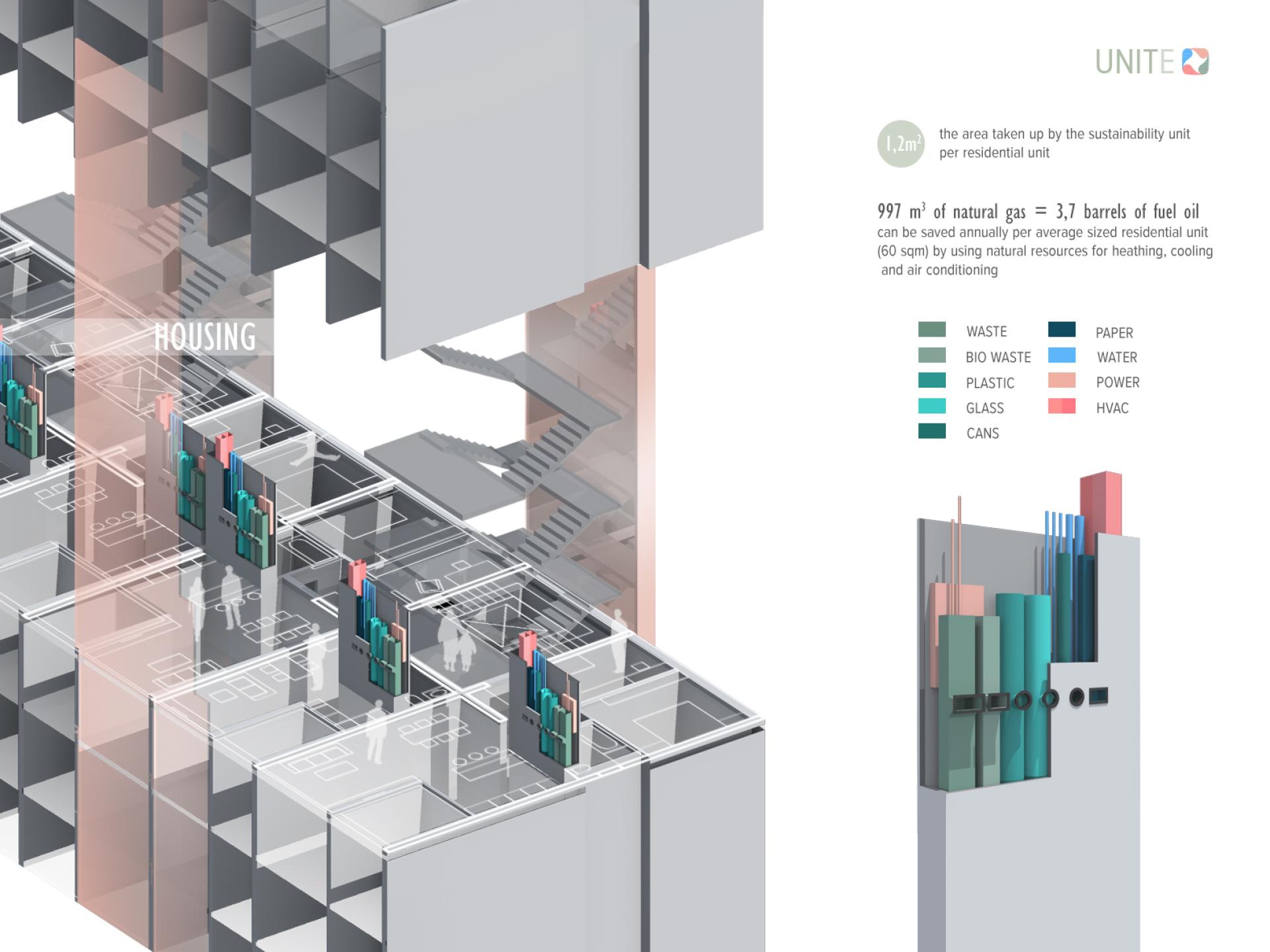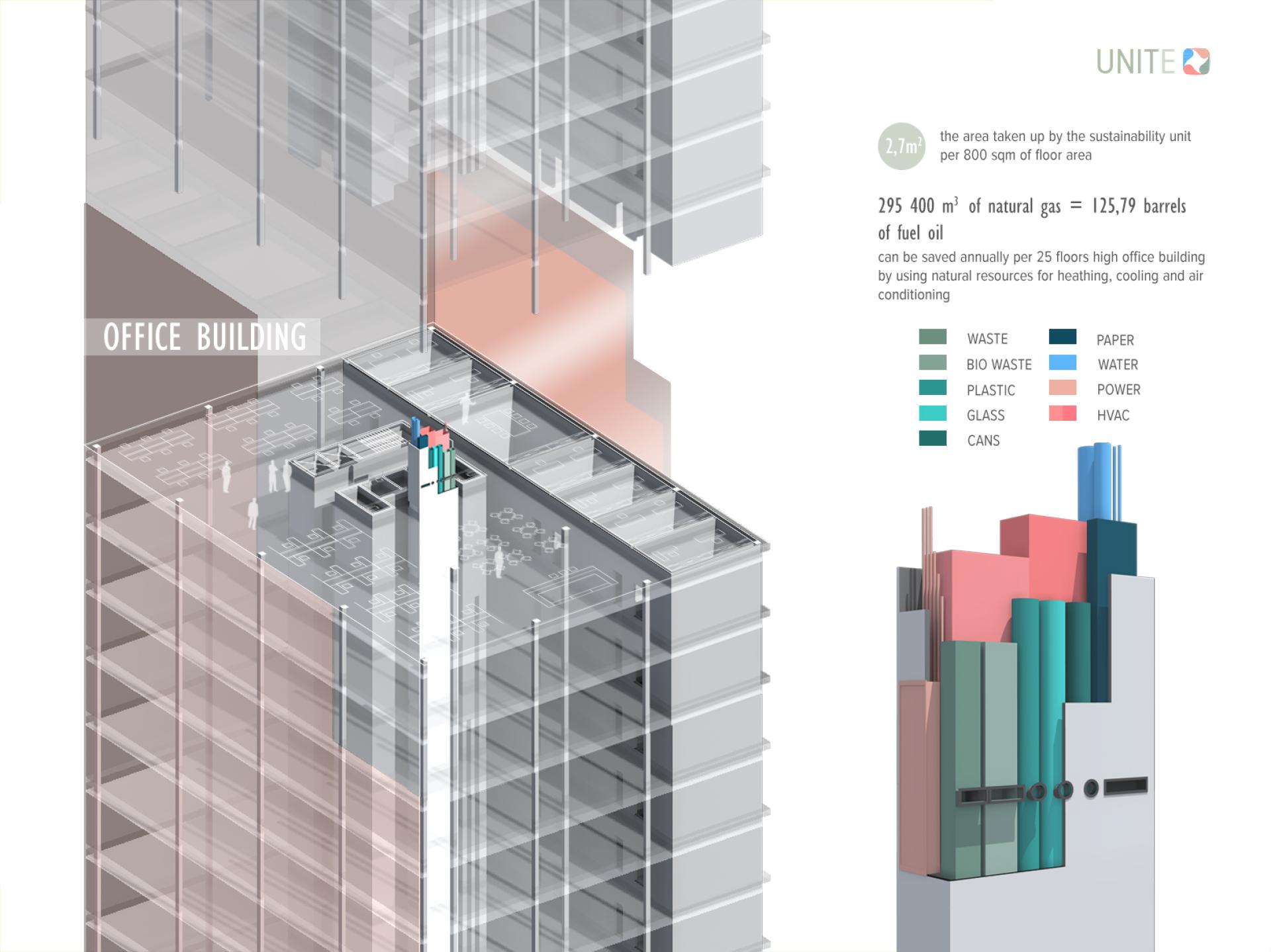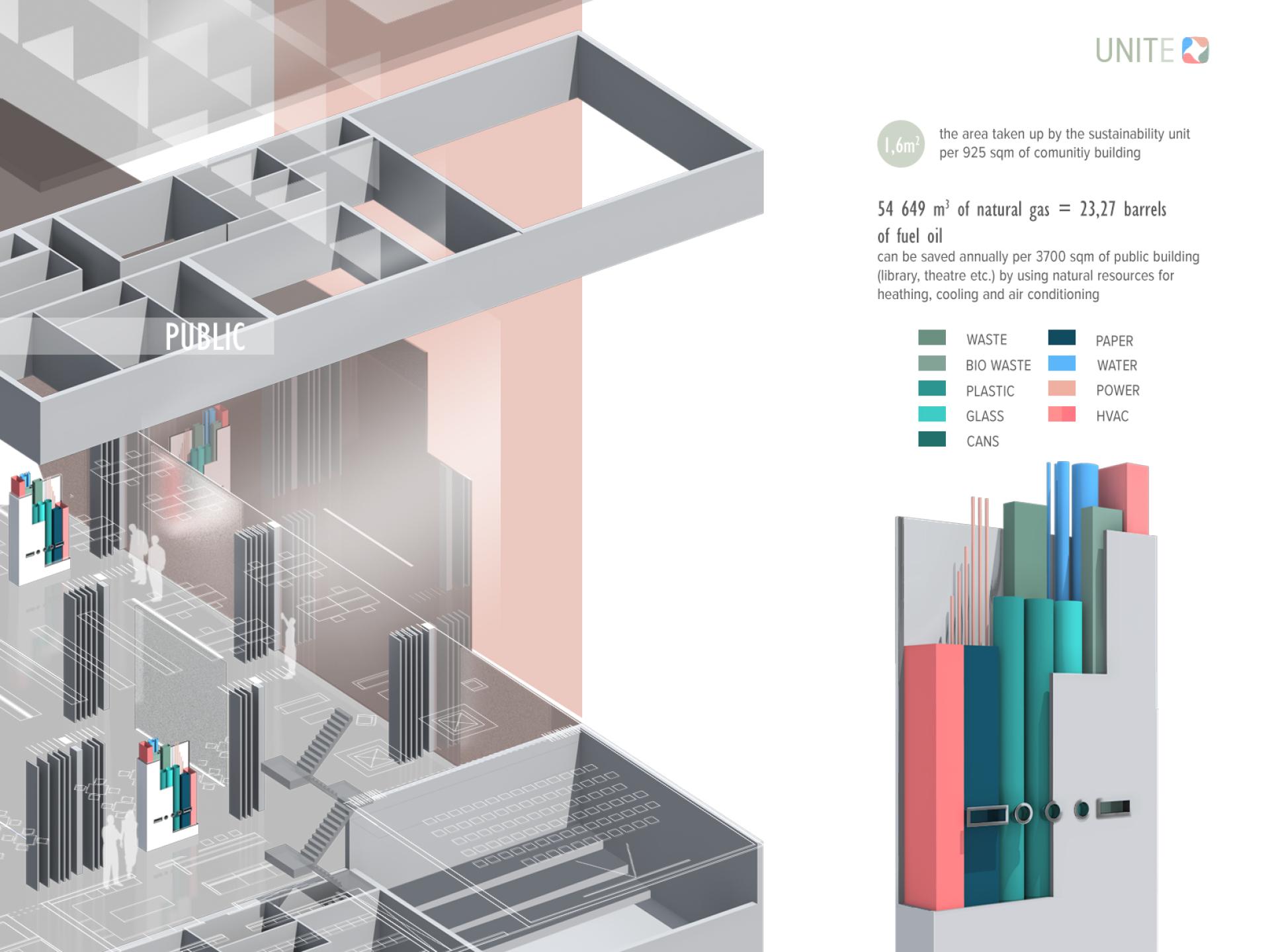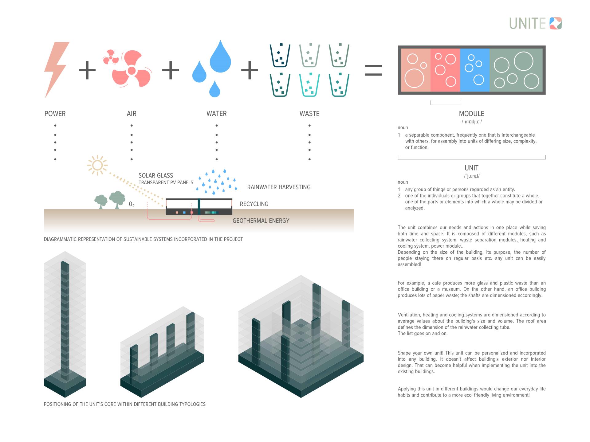 This unit can be personalized and incorporated into any building. It doesn't affect the building's exterior nor interior design. That can become helpful when implementing the unit into the existing buildings. Applying this unit in different buildings would change our everyday life habits and contribute to a more eco-friendly living environment.
