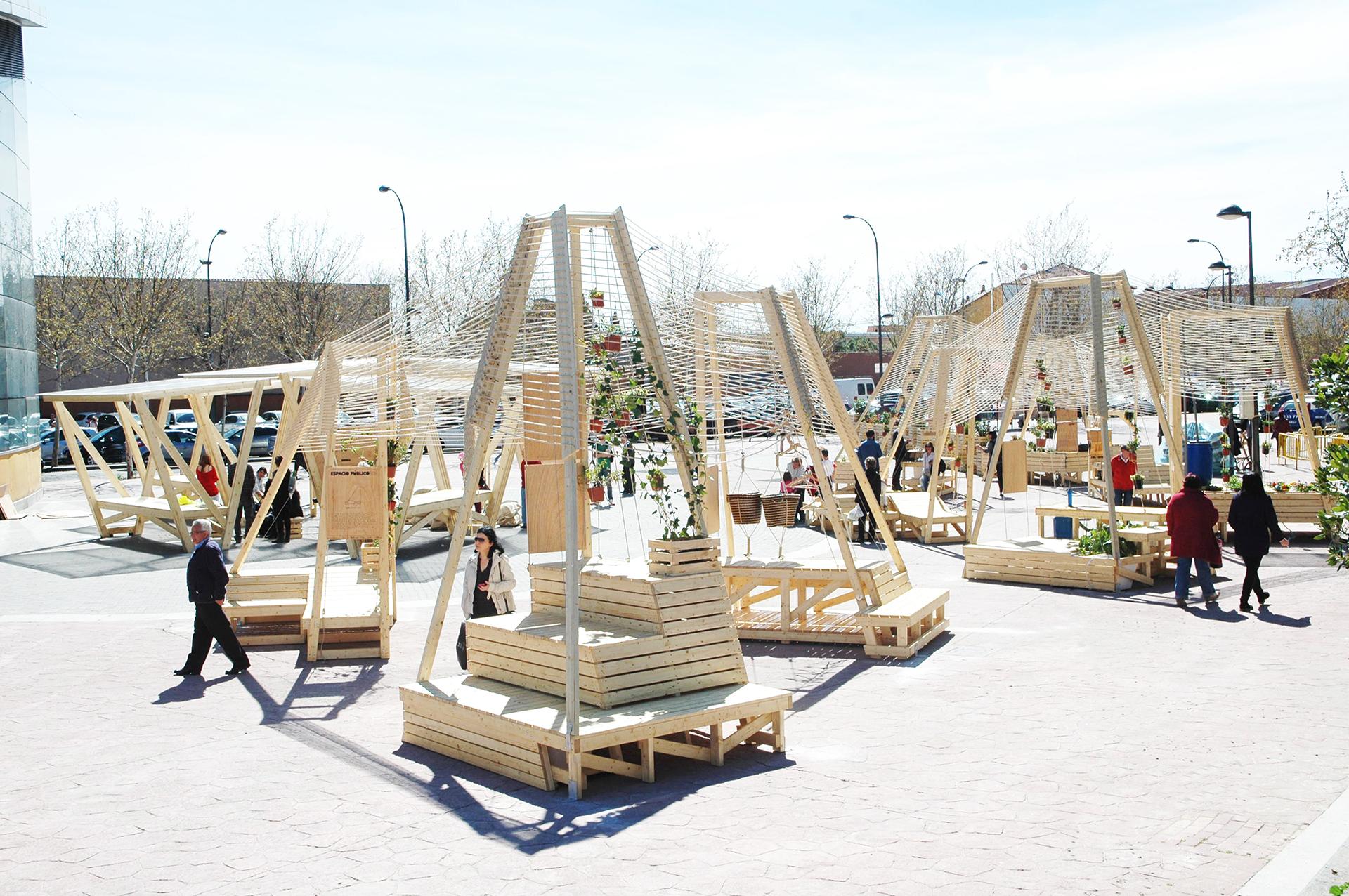 Agroplaza Getafe, is located in a working-class neighbourhood, a lonely underused space without green spaces and hard pavement. Its refurbishment is taking place under the urban regeneration project of the Alhóndiga Neighborhood. Through the participatory process in which citizens, artists, collectives and institutions have taken part, the urban furniture prototypes have been co-created and designed from the intersection of their different needs.