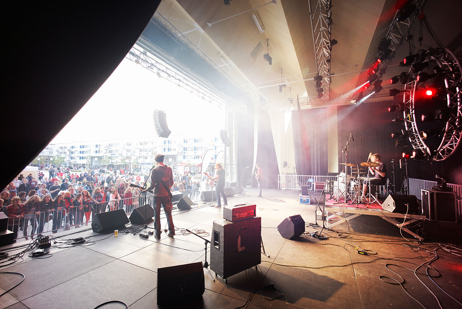 From the rue Royale, a major traffic axis connecting the city to the seafront, the hall is set in the grand perspective of the vast mineral plateau in bluestone. The hall seems to "absorb" the ground inwards. The large opening expresses the function of this real event machine and its great modularity.