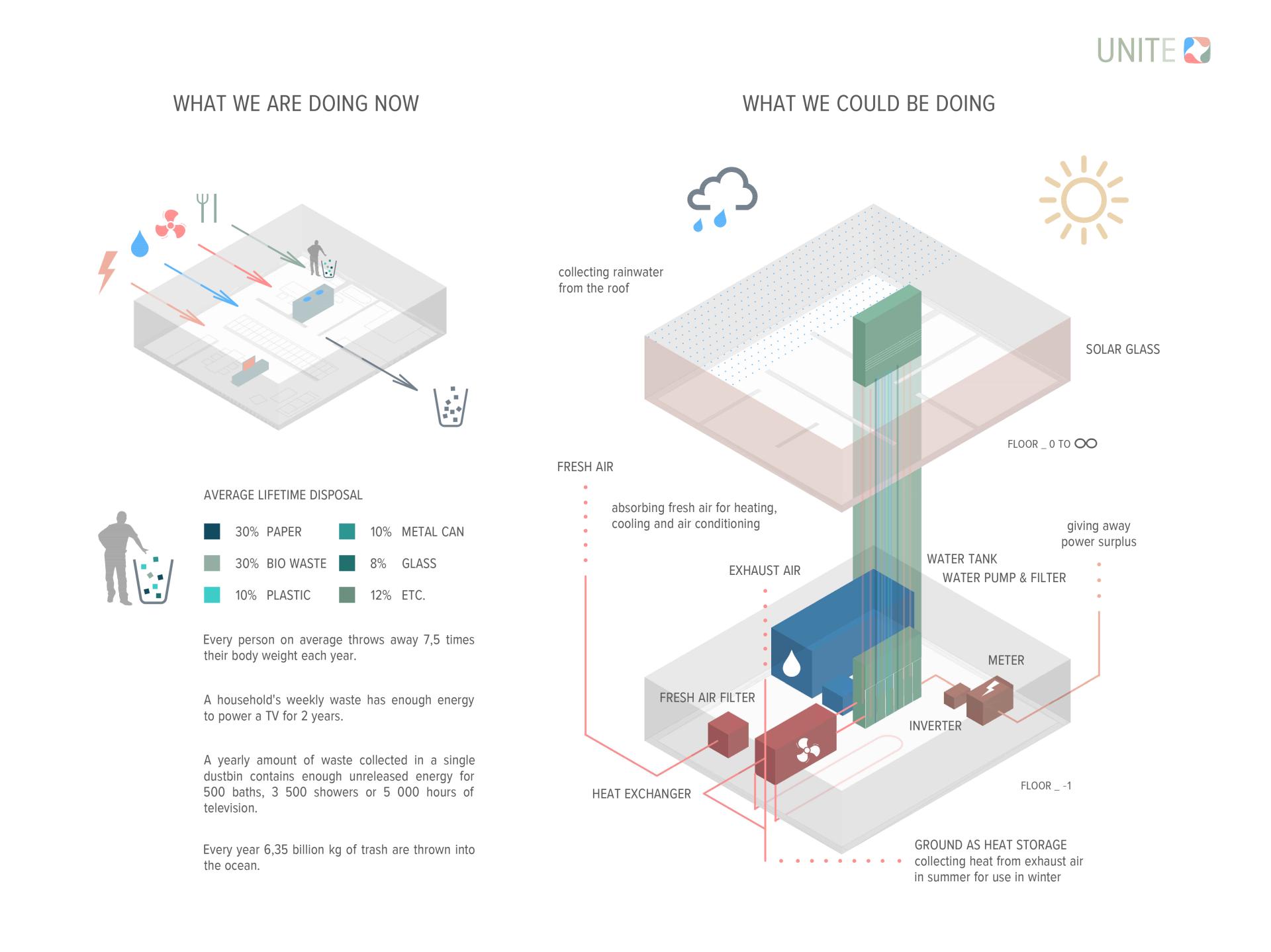 This unit can be personalized and incorporated into any building. It doesn't affect the building's exterior nor interior design. That can become helpful when implementing the unit into the existing buildings. Applying this unit in different buildings would change our everyday life habits and contribute to a more eco-friendly living environment.