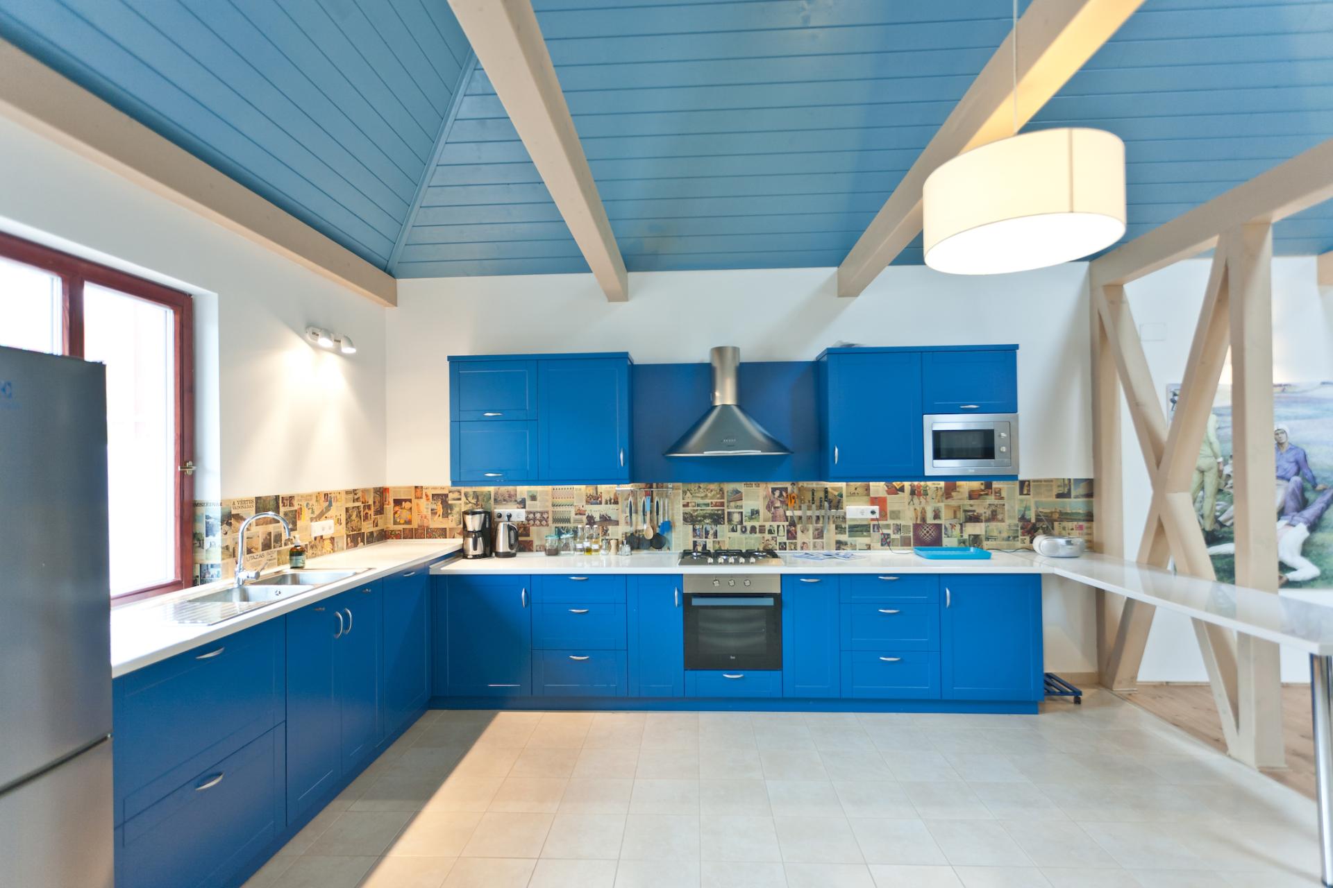 We take pride in the fact that we really give our guests that comfortable and stylish experience we promise. Much effort has been made to guarantee true luxury: all three villas are very capacious and, with a floor space of 170m2 each, they are even larger than the average house or apartment our guests normally live in. In particular, the very high living room and kitchen ceiling (over 6 metres) gives a very spacious impression. Each house has its own interior design: the Lower House displays a rustic, countryside style; the Middle House has a retro 1960s feel; and the Upper House boasts a trendy, sleek and modern design.