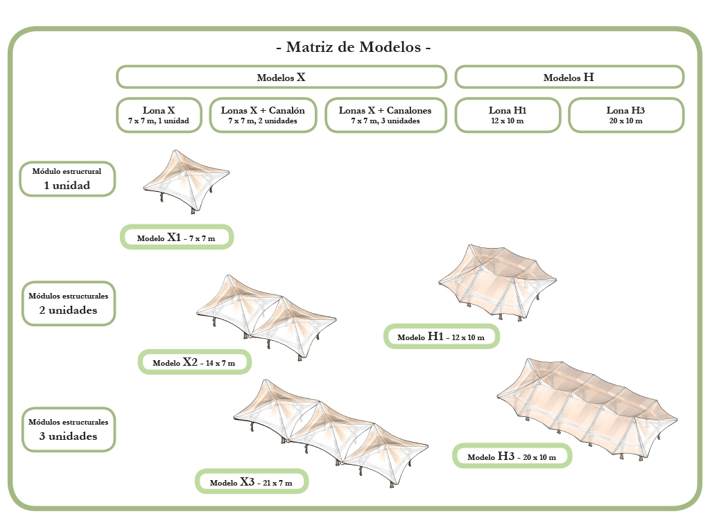 On the other hand, the material used as tensile covering is made out of high-performance PET (polyester) fabric coated in PVC (polyvinyl chloride). None of these 2 artificial polymers is renewable nor biodegradable since they are outcomes of the petrochemical industry. However, the Texyloop® method patented by Serge Ferrari® Group makes this material fully recyclable to be reused in other applications and therefore not producing wastes.