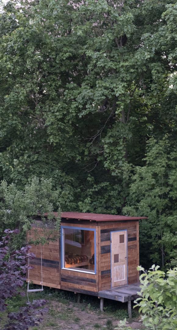 The proposed design adopts to these framework conditions and proposes a highly adaptable, movable and expandable house module crafted nearly 100% out of reused material. Consisting of interchangeable wall elements the 'house without a footprint' can adapt to many uses that work on limited space. Thinkable are weekend home, sauna, office, atelier and so on. The house unfolds its full potential when placed in the healing loneliness of the rural landscape. The dimensions are chosen just under the limit so that the user does not need an elaborate building permit.