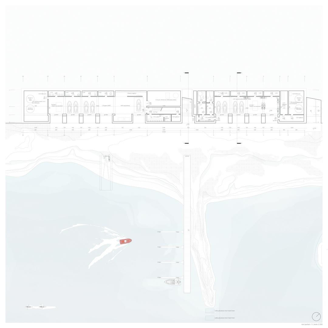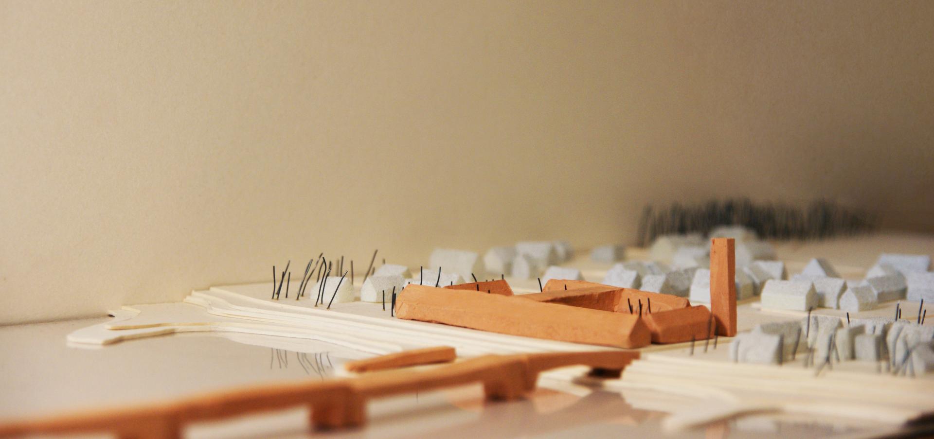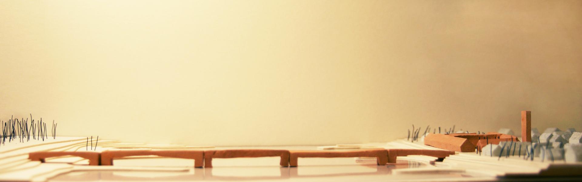 The project focuses on a unit in Połęcko. The plan is based on the farm building scheme. The complex consists of two squares, a public, and maneuvering, divided by the garage. The facility was erected from rammed earth from excavation. Simple technology allows inhabitants to participate in the process of building. The culmination is the construction of a bridge, which facilitates the operation of the firefighters and encourages the integration of the region. Buildings are linked by the brick-red material corresponding to the surrounding buildings, the firefighters' archetypical red.