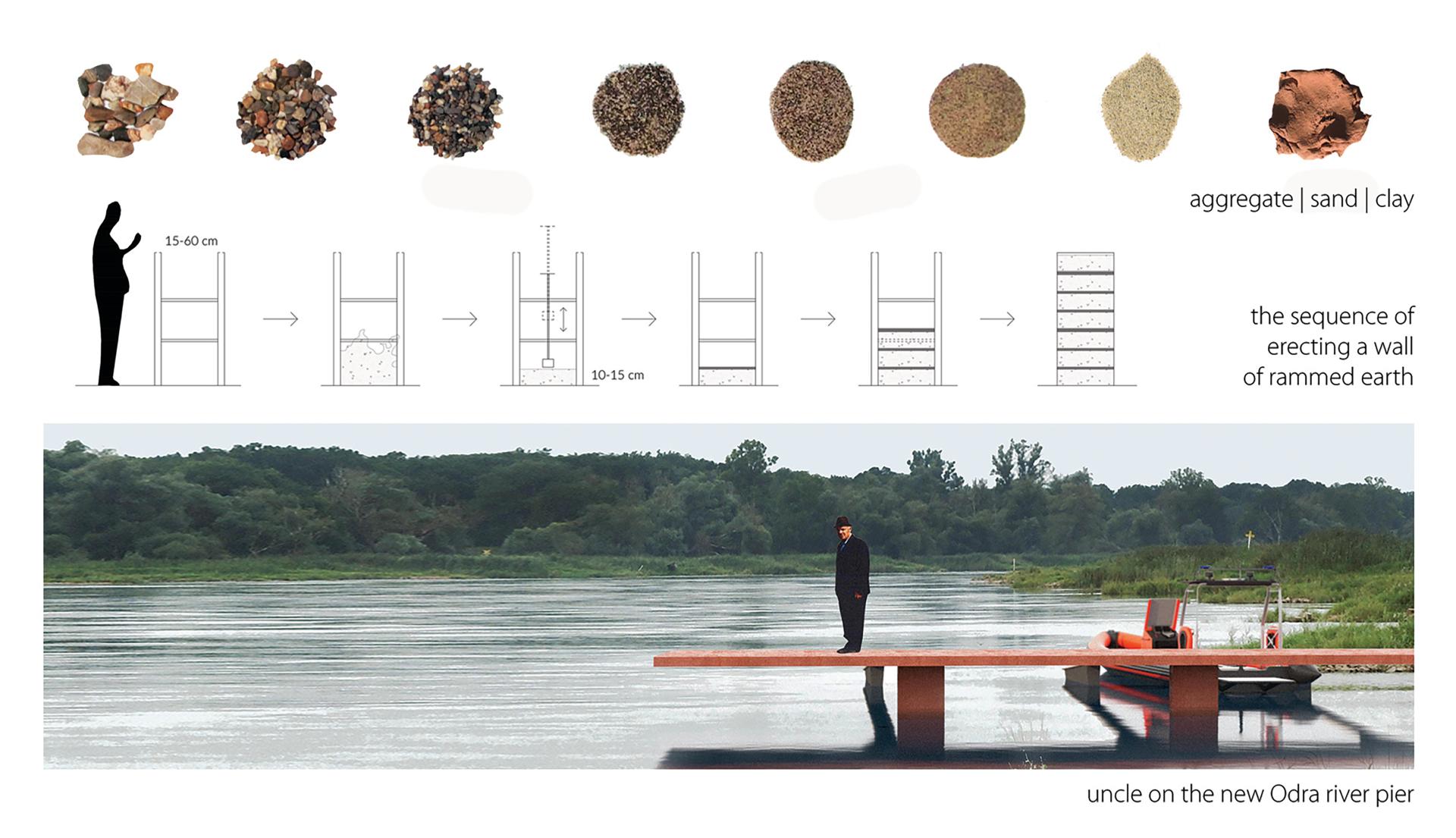 The idea of strengthening interpersonal relations and caring for the beauty of nature is visible in the community construction of watchtowers made of natural, low-processed material of local origin, i.e. rammed earth (low-tech architecture trend). The soil from the excavation is traditionally treated as waste, here it was used as the main building material. Over the next 15 years, 500 million tons of soil treated as waste will be obtained from the trench for new investments. The building structure is characterized by low built-in energy. The material is also a reference to the traditional material used in Poland - the so-called glinobitka (compacted clay with straw). The investment is characterized by low construction costs and the involvement of the rural community and firefighters. Massive breathable walls and natural ventilation provide a friendly microclimate in the interior. The 80 cm thick walls allow for good heat accumulation.