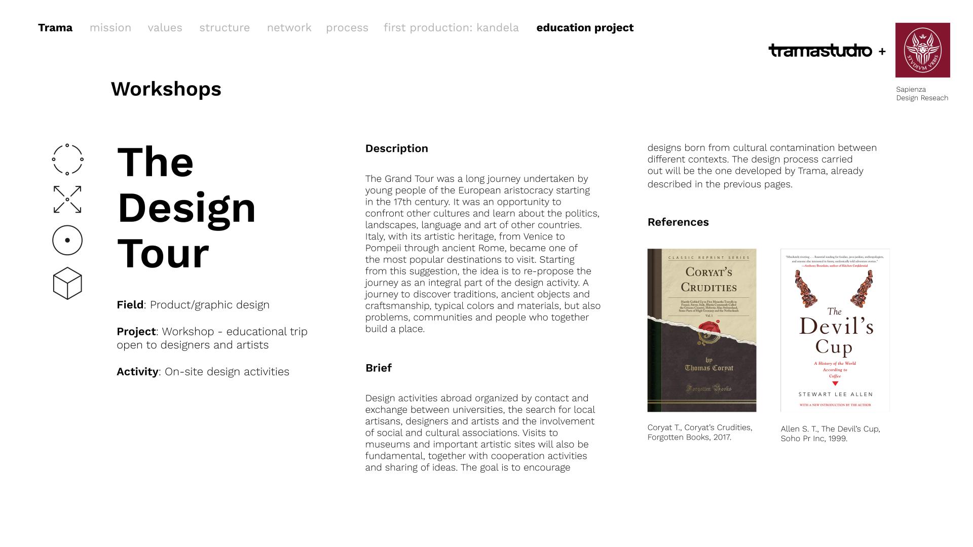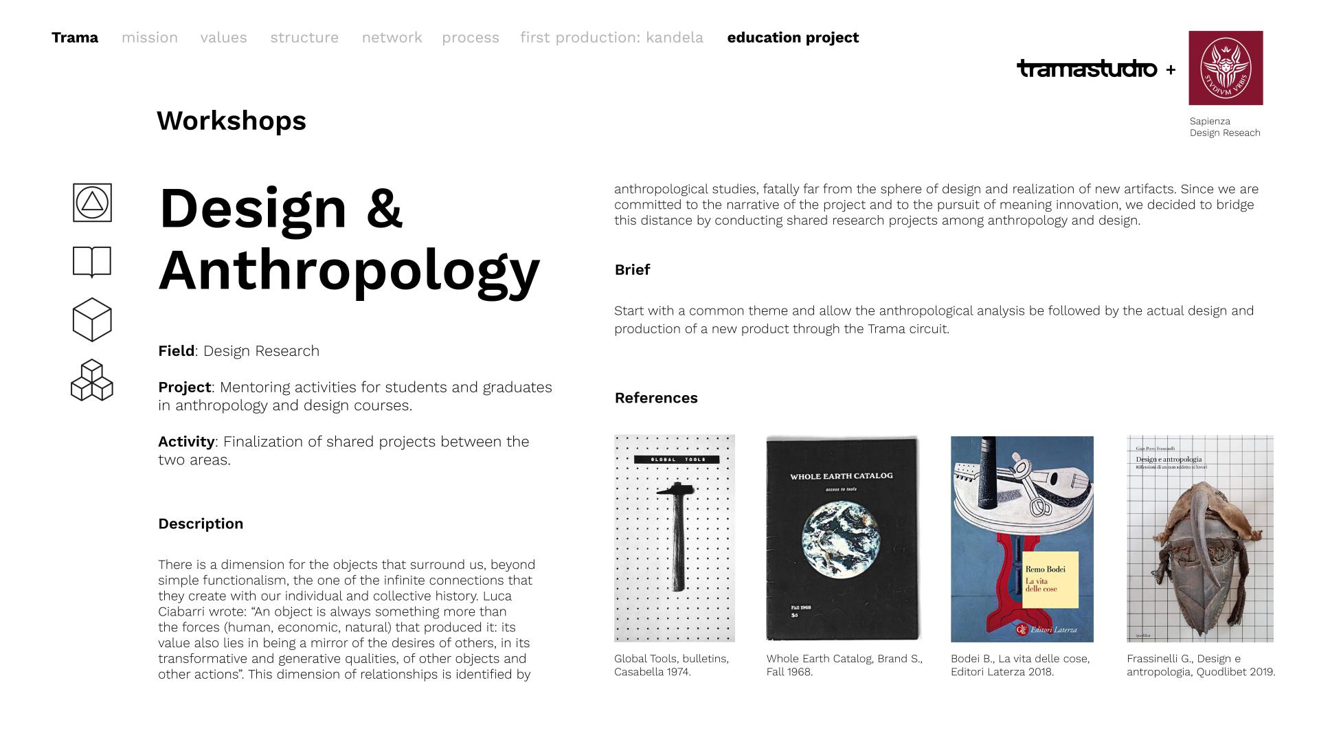 Trama is primarily a community of people that bases its actions, open not only to professionals but also to students with educational activities, on confrontation and discussion and, at the same time, seeks also to involve the final users of its products in the same process.