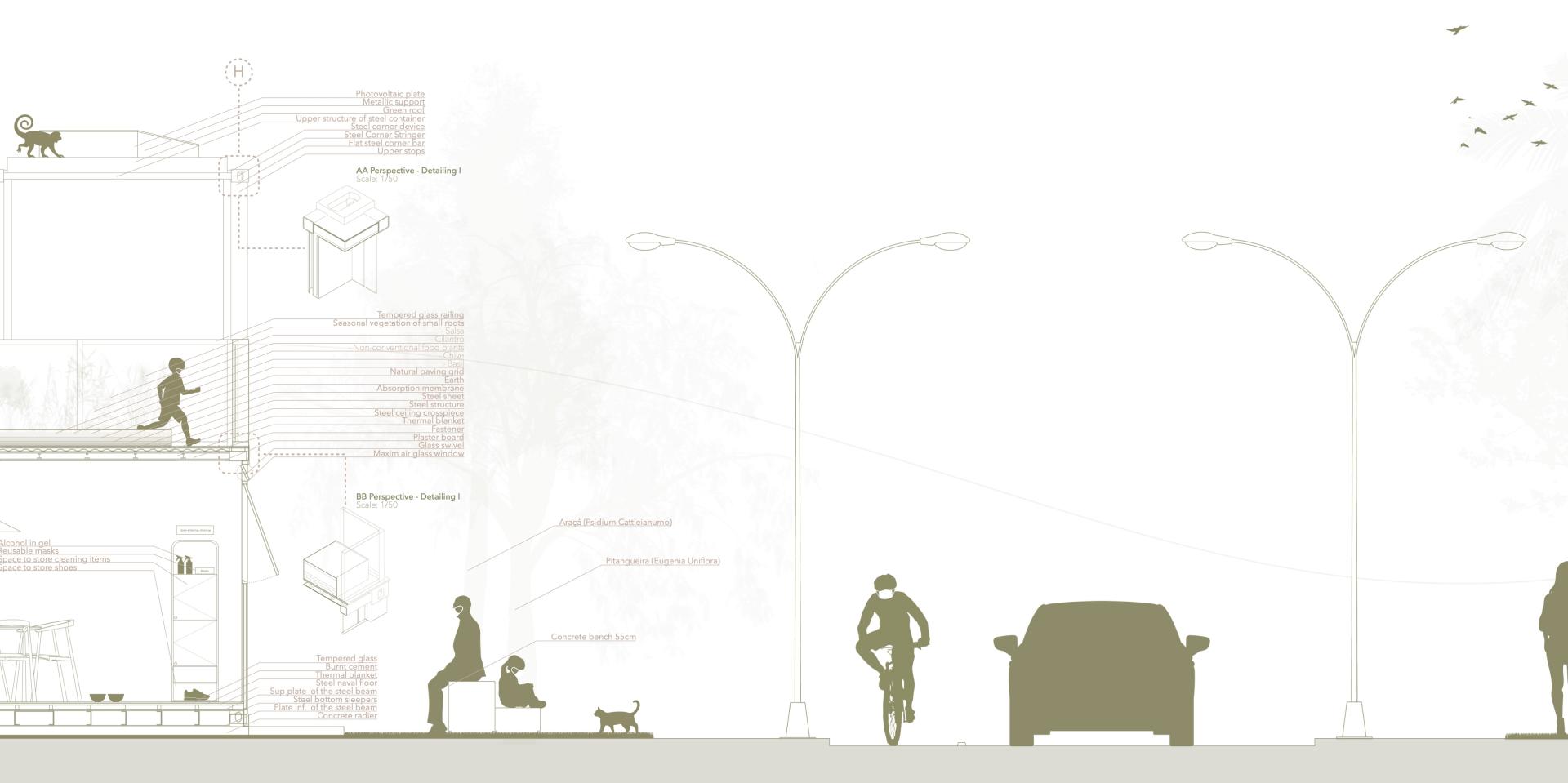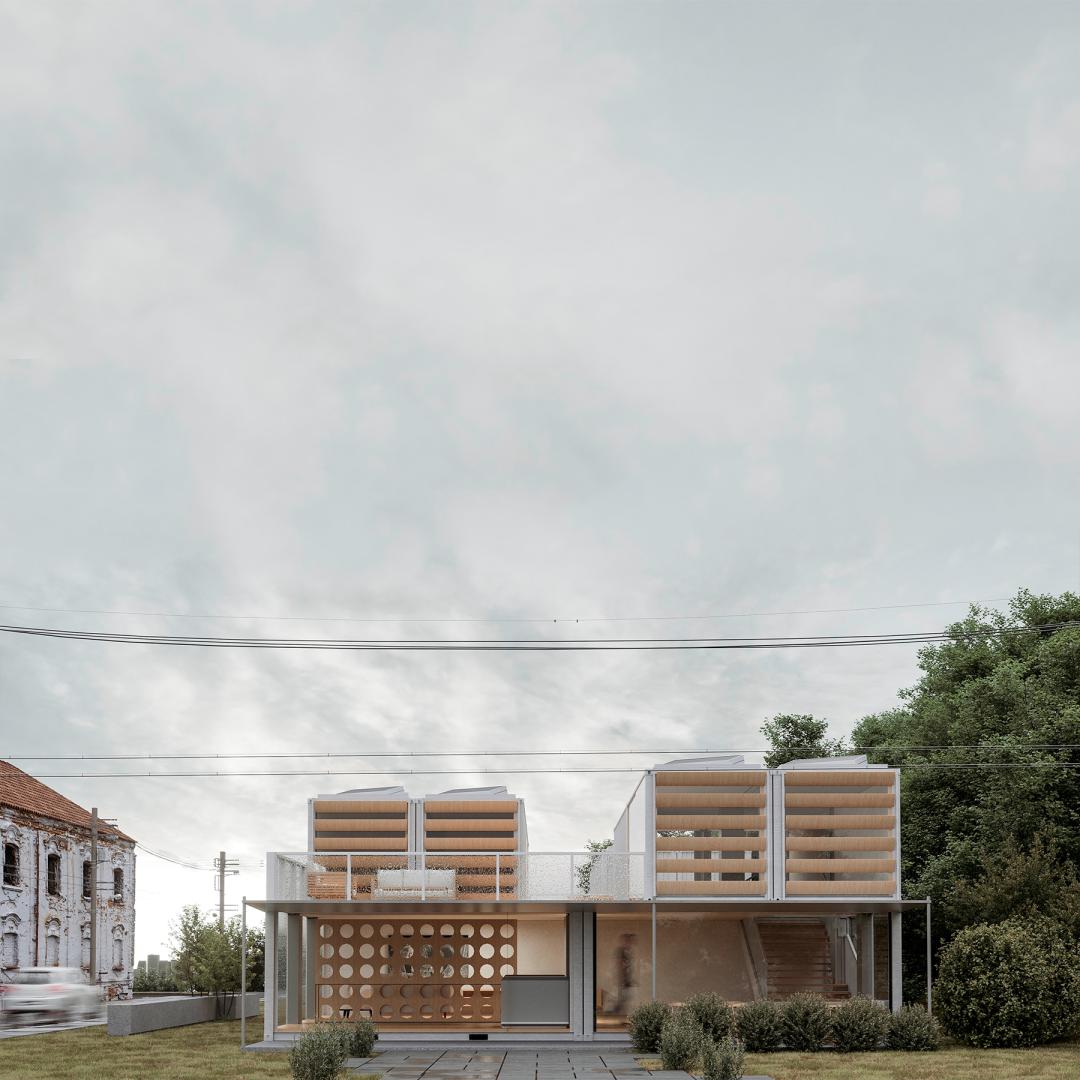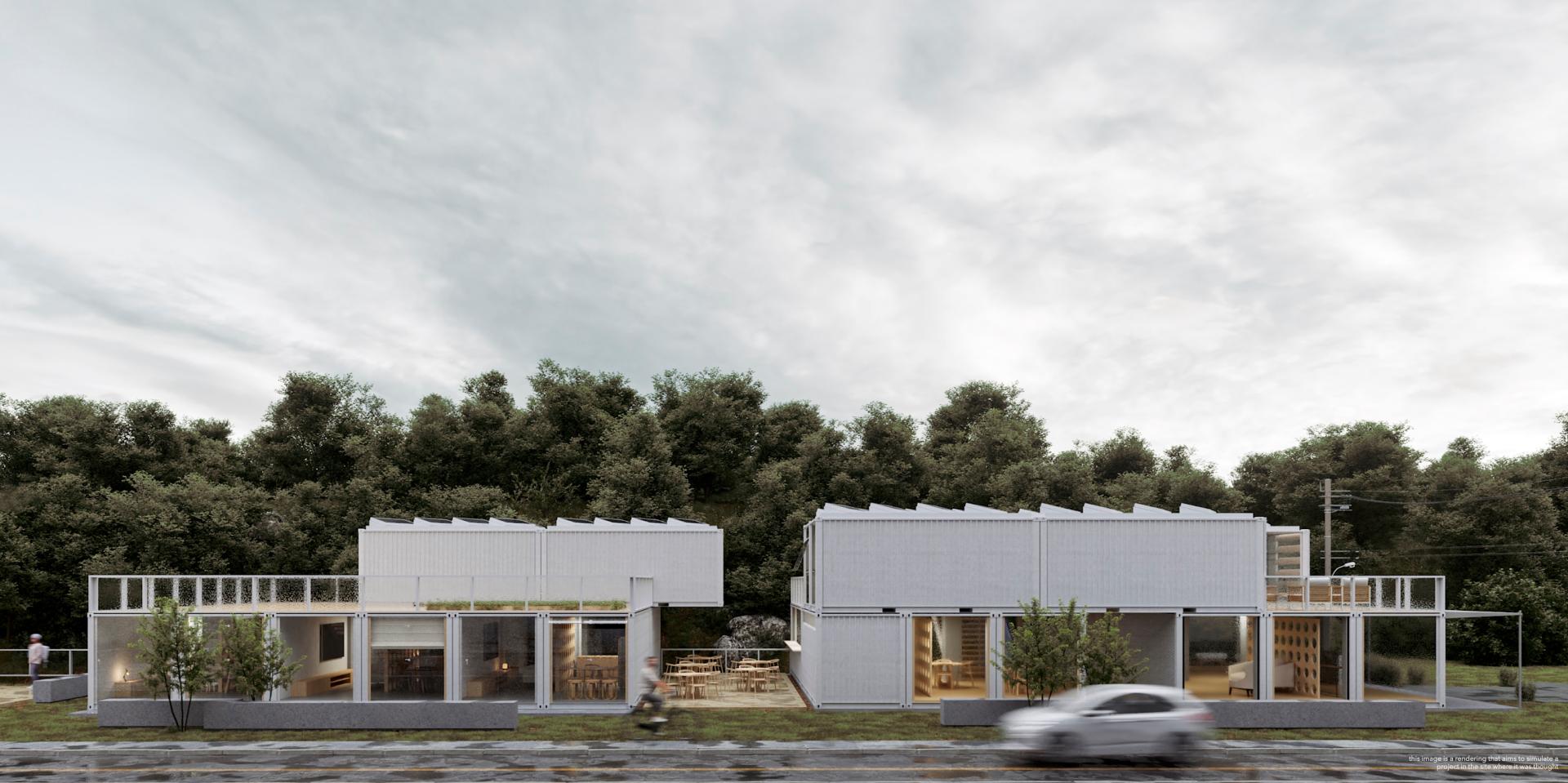 The project was thought during 6 months, with an estimated execution of 4 months. In it, It was proposed the insertion of 42 conteneirs of 20 foot treated with thermal insulation, totaling a space built of 620 m to meet two needs: a dance school that previously operated in spaces adjacent to the church and three emergency social housing, which would serve as temporary shelter for the residents, always having on mind the necessity of a fast and accessible construction, with materials of easy insertion on the local.