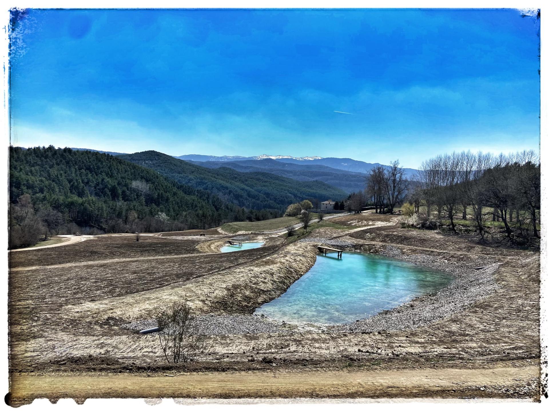 Finally, to ensure the sustainability of the farm, 3 large retention ponds, allowing the capture of 10,000m3 of natural water, were built with the support of Josef Holzer. The ponds will provide water for the permaculture farm and the inhabitants.
