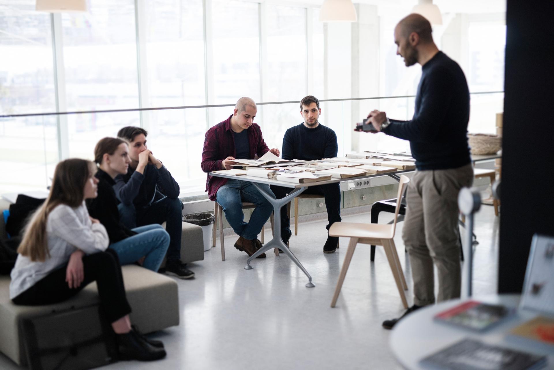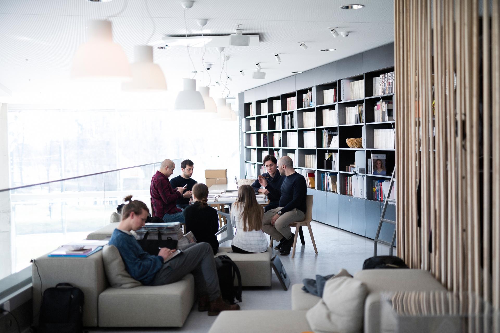 DesignLibrary Kaunas is located in KTU Santaka Valley in Kaunas, Lithuania - an integrated science and business centre built in 2014. Given the growing need for design in this high-tech environment, in 2016, KTU Design centre suggested redesigning two empty floors of this science valley, primarily thought to be empty landing areas, into a physical platform for design community-oriented cultural activities. Instead of employing other resources to build the location from scratch, the library was established in an already existing empty space. Most of the library furnishing and equipment were donated by Lithuanian and Italian companies and designers as a supporting gesture to the diffusion of design culture. The archive – a unique selection of volumes (books and magazines) and design artifacts are donated by publishers and collectors—design artifacts (designed objects) - donations resulting from cultural events. The artifacts support storytelling about design and, at the same time, constantly grows the DesignLibrary collection and the environment.