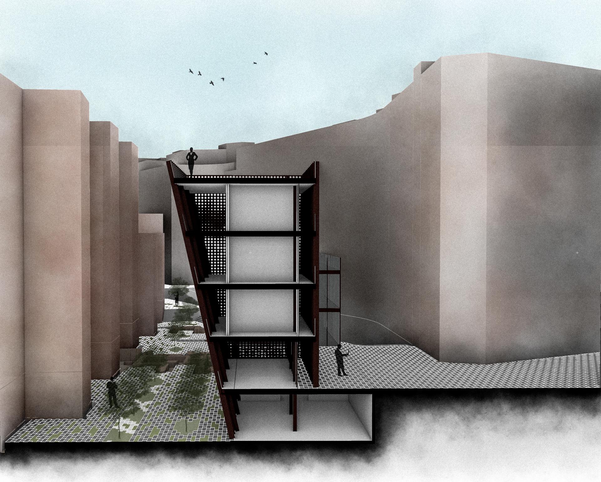The materials of this project have been chosen based on sustainability, in such a way that its assembly is more efficient and consumes less energy, on the other hand, thanks to the solar protection systems the energy consumption of the building is reduced, said material can be obtained from the reuse of other projects. Corten steel is also a material that is more resistant to corrosion, in such a way that its durability is more extended. On the other hand, the project will have rainwater collection tanks, which could supply the building and public areas.