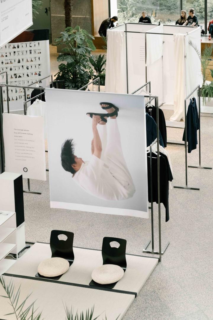 exploring the impact our clothes have on us, and ultimately, the planet. In an apartment setting, it began in a bathroom where you were encouraged to consider your water consumption, then moved to a dressing room, where a mirrored call to action asks you to think about ‘what you wear often’. Here you viewed 10 oftt wardrobe staples before continuing to a peaceful reflection space which showed a short film invoking the journey you could take as an oftt-wearer.