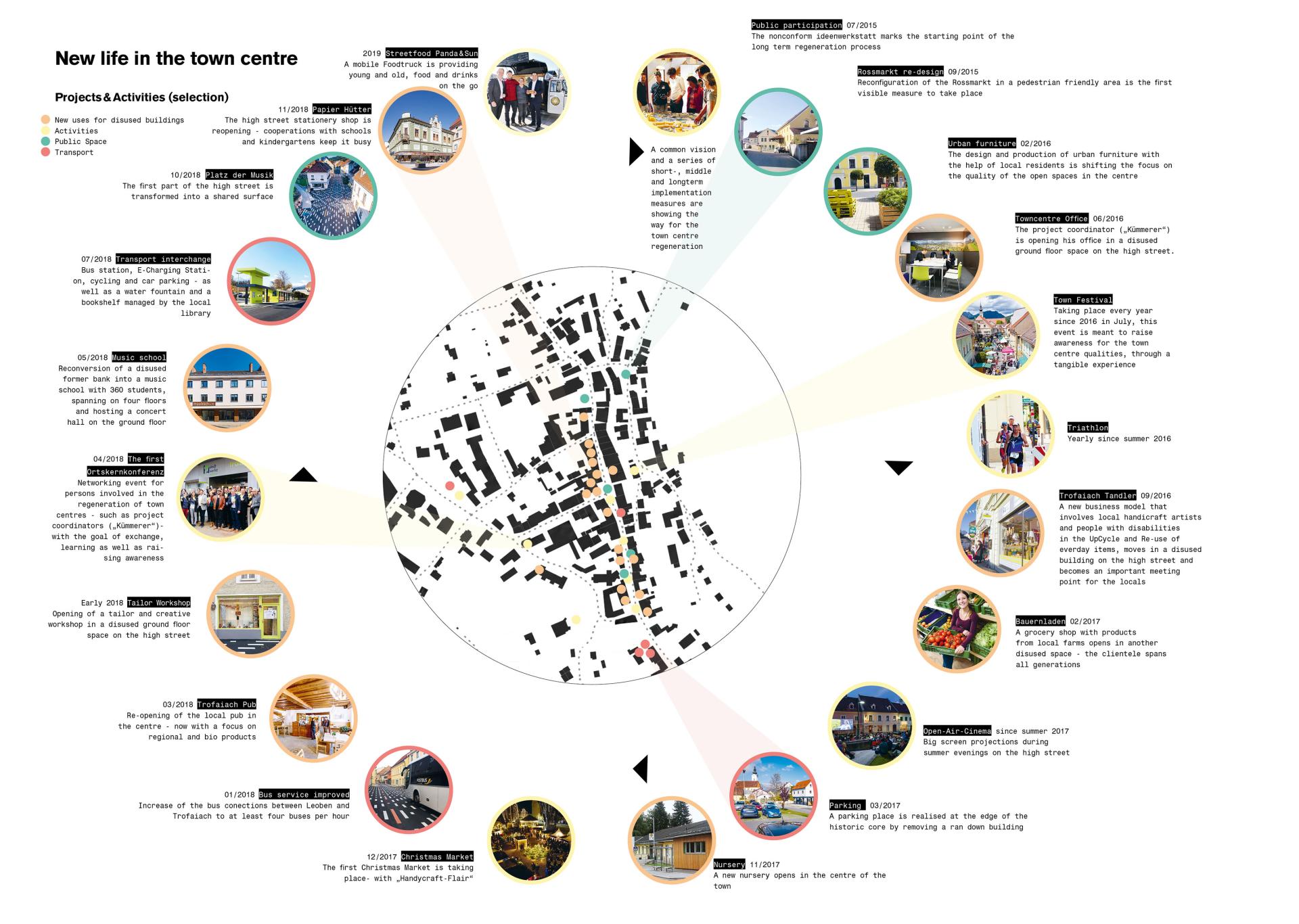 The Donut-effect is a common reality of many small European towns. Even though the measures against it are known in theory, the implementation often stumbles into divergent interests and power structures. Trofaiach shows that when creating momentum and turning the divergent forces into convergent energy flows, a lot becomes possible.