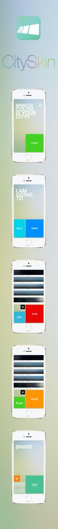 CitySkin is an experimental mobile application. The application uses mobile phones for data retrieval and mapping, to design an invisible skin of a city (an output map). It follows an user journey at a given moment in time and place. The project explores relations between subjectivity and raw data by combining hard data with visual mapping. Cities and their intrinsic diversity can be compared. Slightly different input variables can present greater changes in a recurrent path.