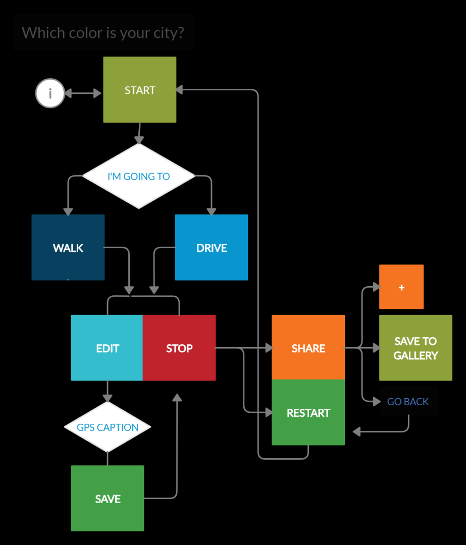 CitySkin produces outputs which give visibility to invisible layers present in quotidian life, adding a cultural impression to design and computation. Each image reflects the point of view of a user along a path. There will be differences in colors and distortion on the output image (skin). Each skin will be unique and will reflect the singular point of view of the user’s time, place and playfulness. Finally. CitySkin suggests to slow down, and embrace contemplation.