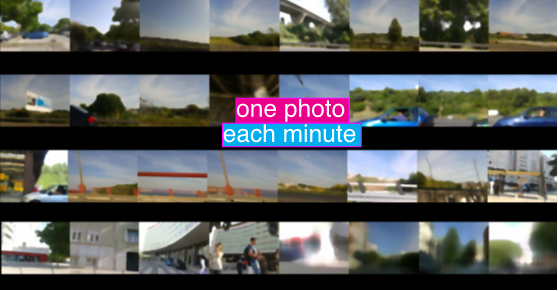 The final graphic map (skin) results from photos taken during an up to 60-minute journey, by foot or in a vehicle. Cityskin takes a photo each minute and has its location recorded. The difference between position A and B will define the velocity and this value determines each photo final length. A median filter is applied to each photo, in order to emphasize color, and its length is compressed or stretched according to the velocity variables. These images are lined horizontally, and a white space is kept between them. The white space adds readability to each picture, but also becomes an editable input text space.