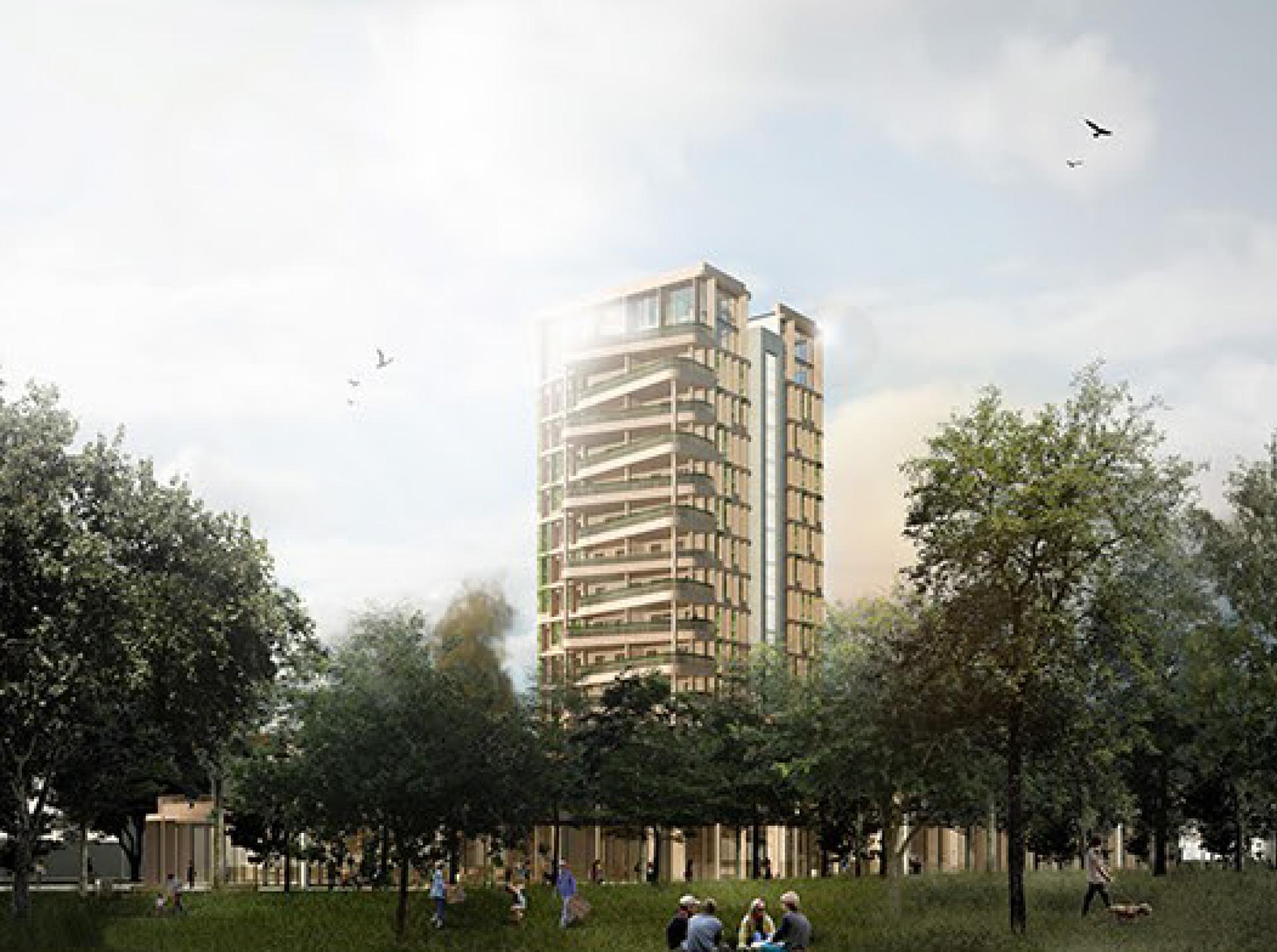 The project presents high quality design in terms of aesthetics due to a combination of the building material - wooden structural elements such as walls, slabs and finishing - with the natural environment of the green enclave. This makes a bit of contrast with an existing tenement development, an edifice of school or the Otto's Wagner Bridge. The last one was a significant factor that influenced the final position of new housing development. The urban context also played a major role while creating the highest quality experience. The exact location of the residential tower was defined on the crossing of two urban axes. The first one opens the view in the West-East direction and goes along the Wien Canal that is partially hidden. The other one creates a view from the North direction while driving through Gaudenzdorfer Gürtel. Worth noticing is the fact that looking from far away the residential tower raises up from behind the trees. It requires to get inside the plot to discover the bottom part of the building surrounded by various outdoor activities. This brings the aesthetics value to the project which creates the opportunity to gain the interest of passersby because of the new technological solutions of woodwork emerging from behind the trees. Moreover, the vertical greenery occuring on the wooden grid facade brings back the nature to the city complementing the whole of the green enclave created by the park. The last benefit regarding quality of experience and aesthetics is the rehabilitation of the places full of signs of vandalism and negligence on the part of residents and local authorities. This is clearly visible in the arched facilities under the Otto Wagner’s bridge. That’s why in this concept this place was regenerated and given to the public use as a free of charge space for workshops or local services. These small steps towards rehabilitation should encourage the community to feel full responsibility for the place and get involved in its improvement.