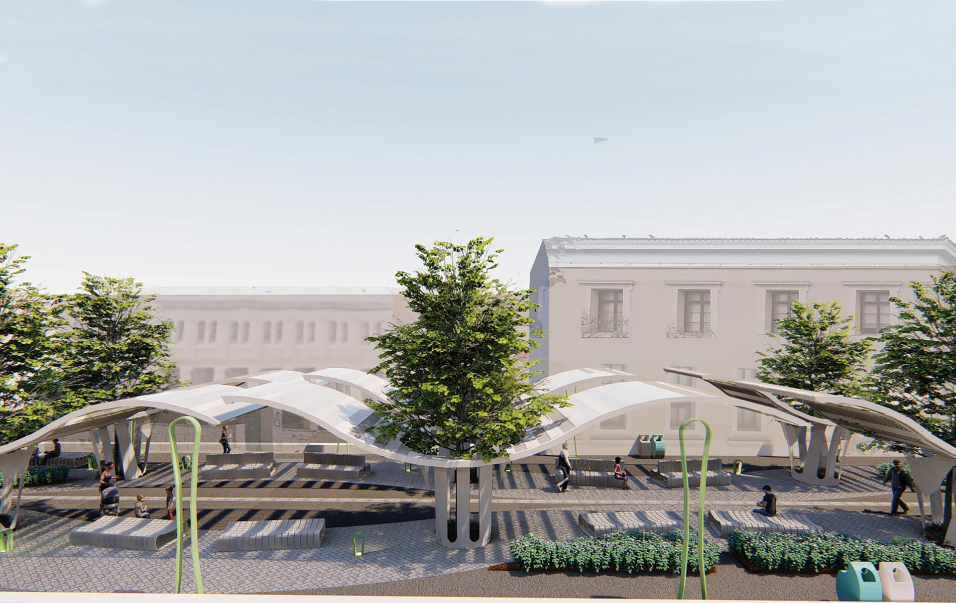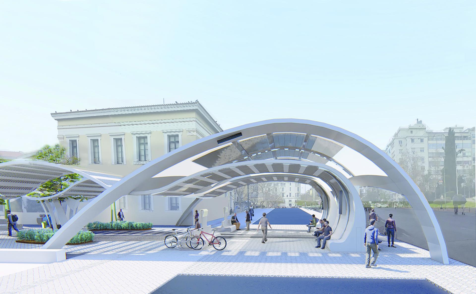 Driven by personal experience and analyzing the results of a questionnaire which was put to citizens-users of a specific urban stop on Akadimias Street, regarding the specifications of an urban stop, I conceived the idea of creating a stop, which will meet all their requirements, so that waiting for the bus is a pleasant experience. During the elaboration of the work, the need arose to renovate the space behind the bus stop, which is a pedestrian street, offering them rest, shading and protection in specific conditions e.g. rain, intense sunshine.