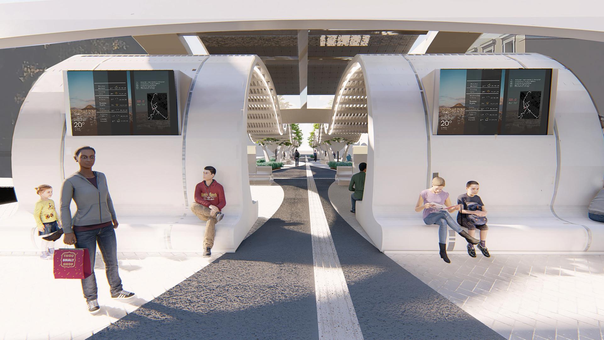 Driven by personal experience and analyzing the results of a questionnaire which was put to citizens-users of a specific urban stop on Akadimias Street, regarding the specifications of an urban stop, I conceived the idea of creating a stop, which will meet all their requirements, so that waiting for the bus is a pleasant experience.The installation does not need to use electricity as it is autonomous due to the solar panels that have been installed on its roof and provide electricity for the screens it contains and the lighting. During the elaboration of the work, the need arose to renovate the space behind the bus stop, which is a pedestrian street, offering them rest, shading and protection in specific conditions e.g. rain, intense sunshine.