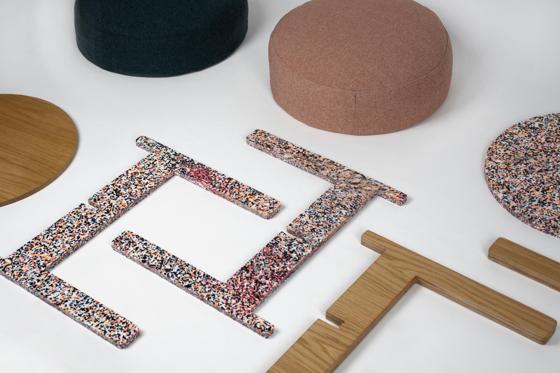 Loop is modular furniture, which implements reuse of waste and secondary materials - both those generated as a result of consumption, as well as those that are a side effect of the production process. Loop gives a second life to recycled materials such as HDPE used in packaging, as well as industrial waste - plywood, waste from the furniture production. During the current global pandemic it is important that Loop also implement the reuse of intensively used face masks and the waste generated during their production. These scraps, after appropriate preparation, cleaning and processing are valuable and attractive materials. Furniture from the Loop series is small and well suited for compact living spaces. Depending on the needs, they can be used as a seat or a table with a cushion placed on the floor. This product is flat packed for easy storage and more sustainable distribution, however Loop can be unfolded and assembled within seconds.