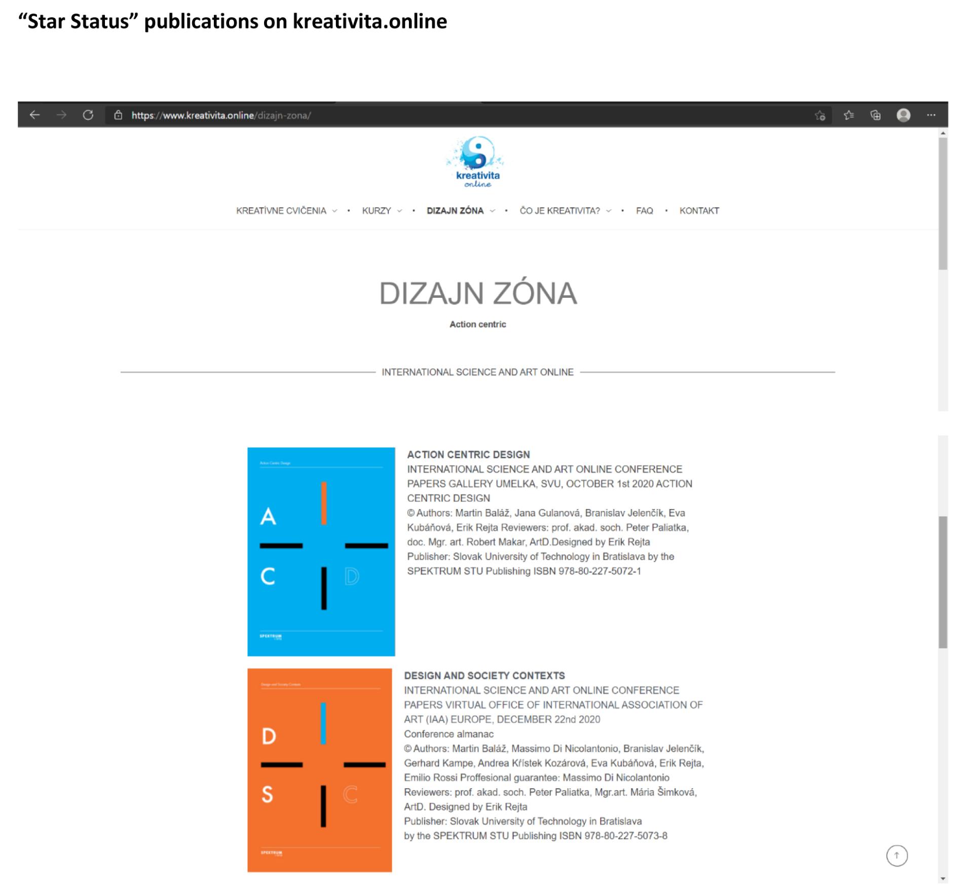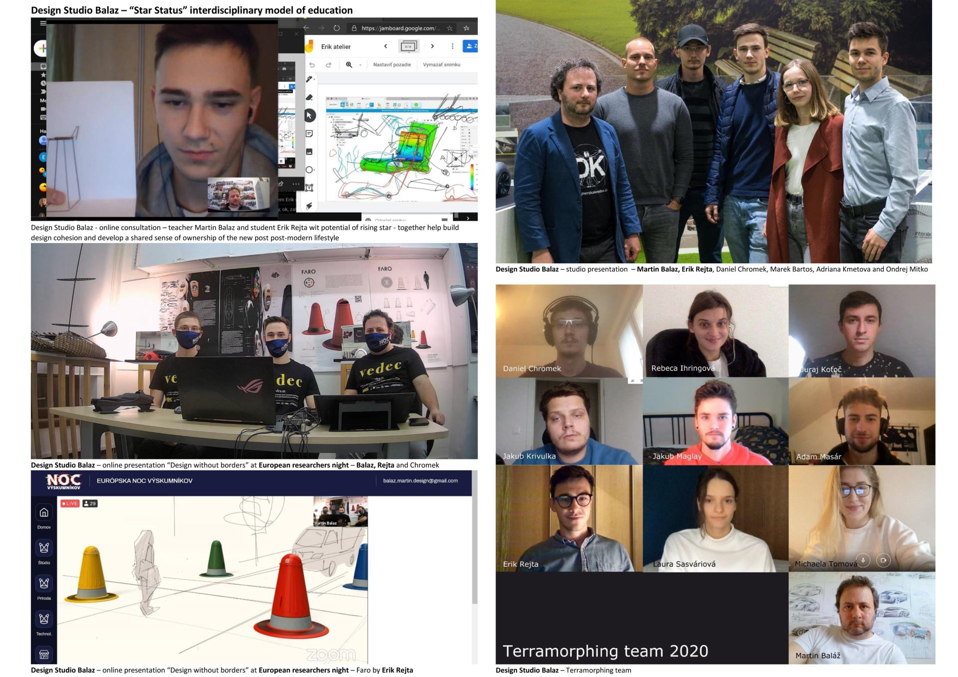 We have achieved together very special “Star Status” design constellation – “Freedom-based Stars Compatibility” – colleagues and teacher-student compatibility with rising star potential. We have composed with “Star Status” design platform interdisciplinary compatibility to education Design Studio Balaz, creative platform kreativita.online and Slovak Union of Visual Arts. We have verified “Star Status” design - interdisciplinary education model for Studio Balaz at Faculty of Architecture and Design and implemented “Action Centric independent artistic research & development fusion” as interdisciplinary education model represented with design sketching workshops and battles, “Synergic research & development design Strategy” as interdisciplinary education model with other university faculties and virtual connectivity in education process during pandemic not only for studio, also as “Informal Connective Virtual Conferences Series” - interdisciplinary education model for the public.