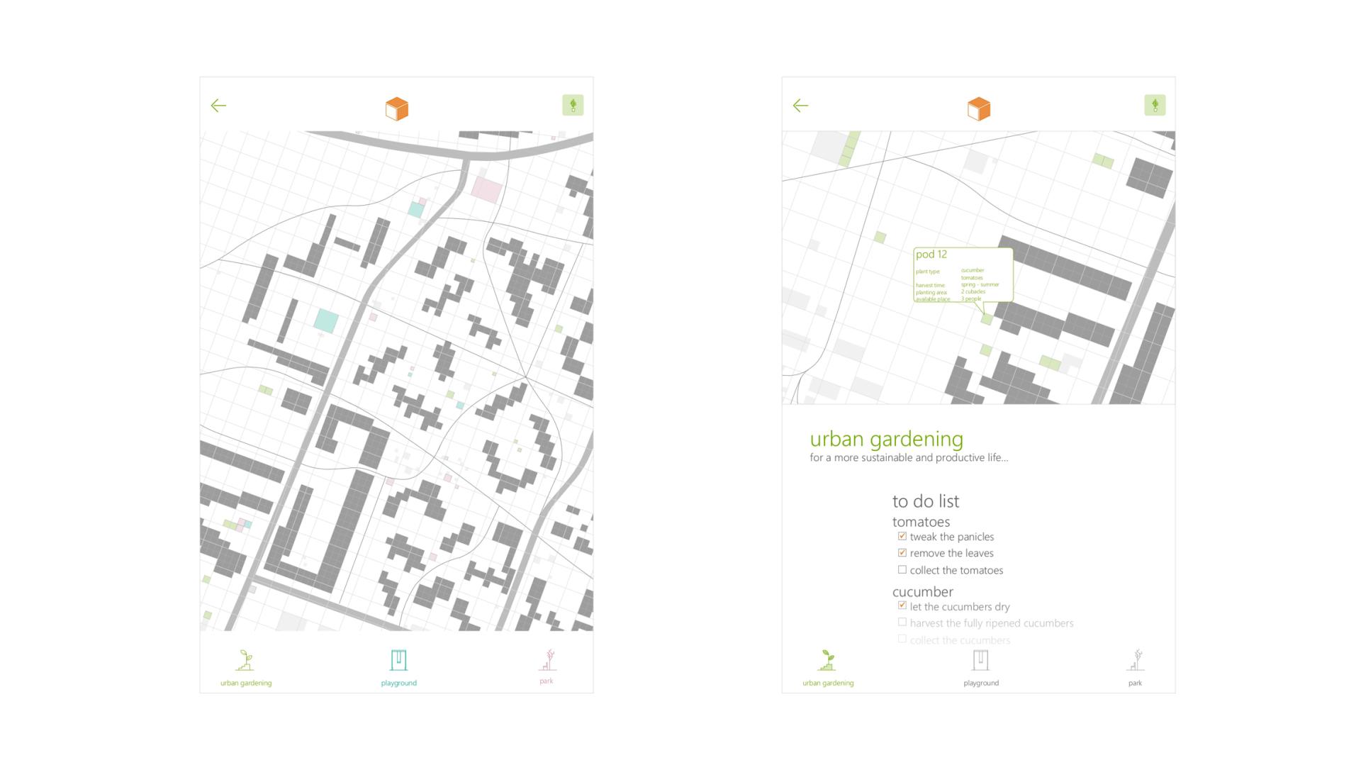 As an approach, an app allows the neighborhood to control the development of their surroundings by gaining a voice in deciding the production, positioning, functions and the future of prefabricated modules for social interaction.