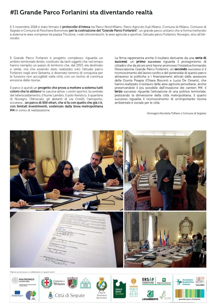 ERASMUS+ Programme (January2015 - February2017) “Community Participation in Planning” (CPiP, 2015-2017), an Erasmus+ project aimed at experimenting new educational models to drive students in urban planning and design towards inclusive planning practices. During the 2 years project students have worked within and for local communities towards a common vision of the Grande Parco Forlanini.