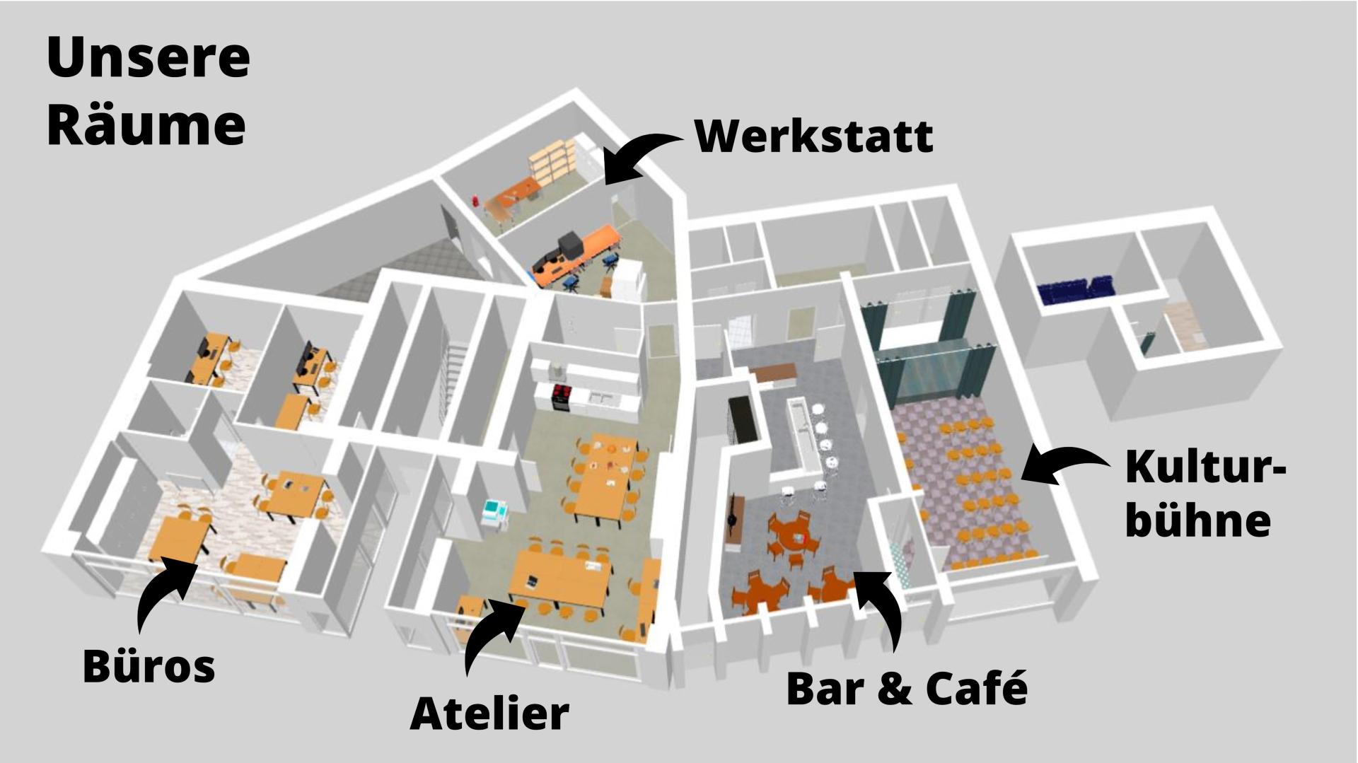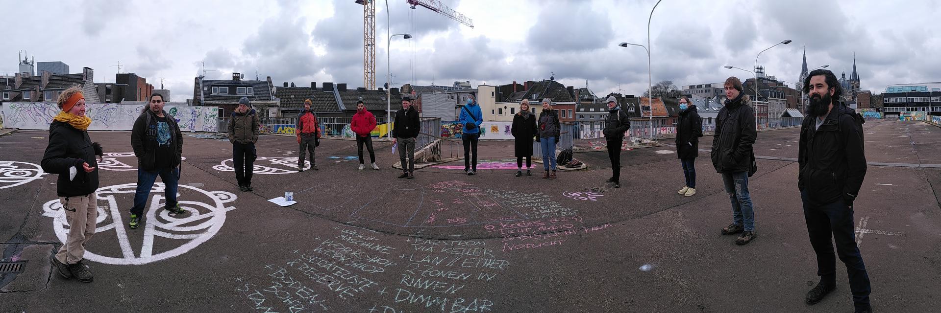 As an association of individuals, initiatives and organisations we discuss, test and shape the pathways towards a sustainable future of Aachen. Starting in October 2021 and located right at the heart of our city, we are developing a sociocultural hub, comprising of workspaces, a studio, a café, a small theater and a large new park to engage a diverse set of stakeholders in socially innovative activities to make everyone a true urban pioneer and creator of her*his city.