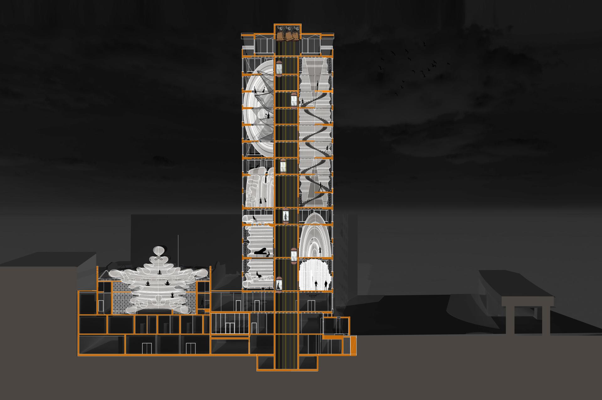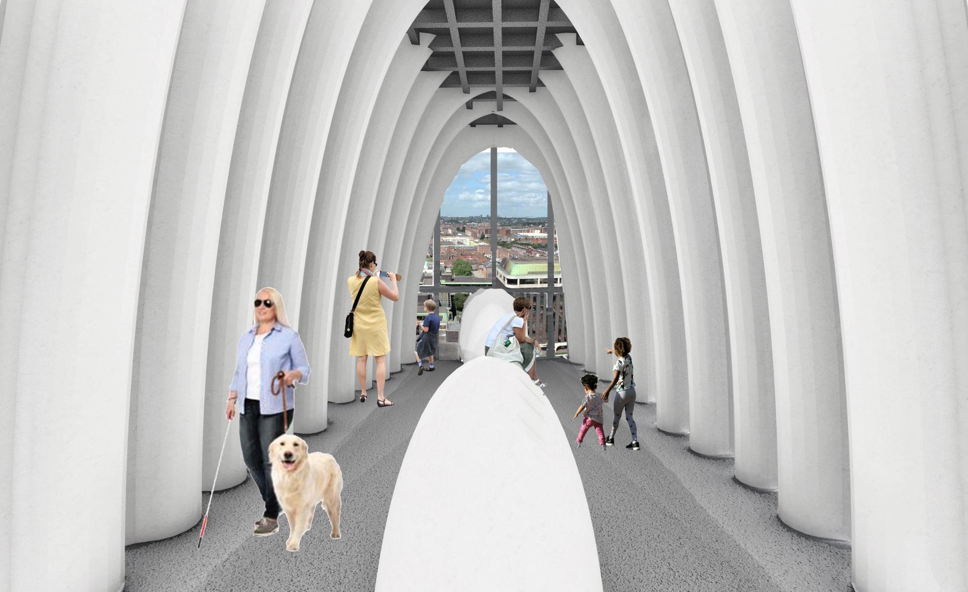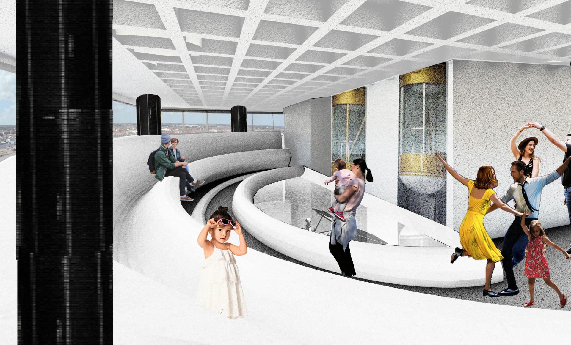 As for sustainability my current test project can be seen as an example of how this type of design can be created in a sustainable way. As I looked at Ireland's first sky scrapper , Liberty Hall and looked at how it could be turned into an acoustic experience. A museum as such without over emphasising the visual. This project which can be view in full on my website. Shows that simple materials and forms can be used to retrofit existing spaces into more inclusive ones. This light touch could allow older buildings to be brought back to life for the greater good and to include all of our population.
