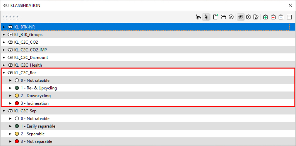 Global warming potentials, health aspects, recyclability, separability and flexibility are the main sustainability factors in the future building process. EPEA made it possible to connect these aspects based on the Cradle to Cradle principle with BIM. This complex interrelationship for a consistent circular economy is overcome using a combination of different software. Thereby, the BIM model is able to depict the c2c parameters using clear colouring to indicate the elements' quality.