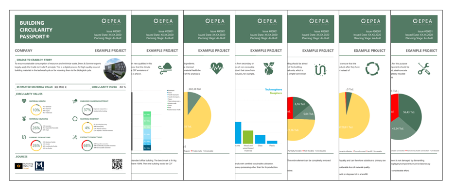 With this tool we are able to create a new identity for building: a Building Circularity Passport which is directly linked to BIM and the planning process. So it serves as a planning and documentation tool, for enabling the circulation of a building in collaboration with architects, all planning disciplines as well as the construction firms. For completed construction projects, the Building Circularity Passport additionally provides detailed information on which of the used materials can be easily separated, as well as on the chemical composition of the products used in the building. It is also possible to determine the monetary value of the structures used in the buildings. This information on the building provides you with considerable added value for financing, through aspects of risk assessment, value determination as well as the operation of the building.