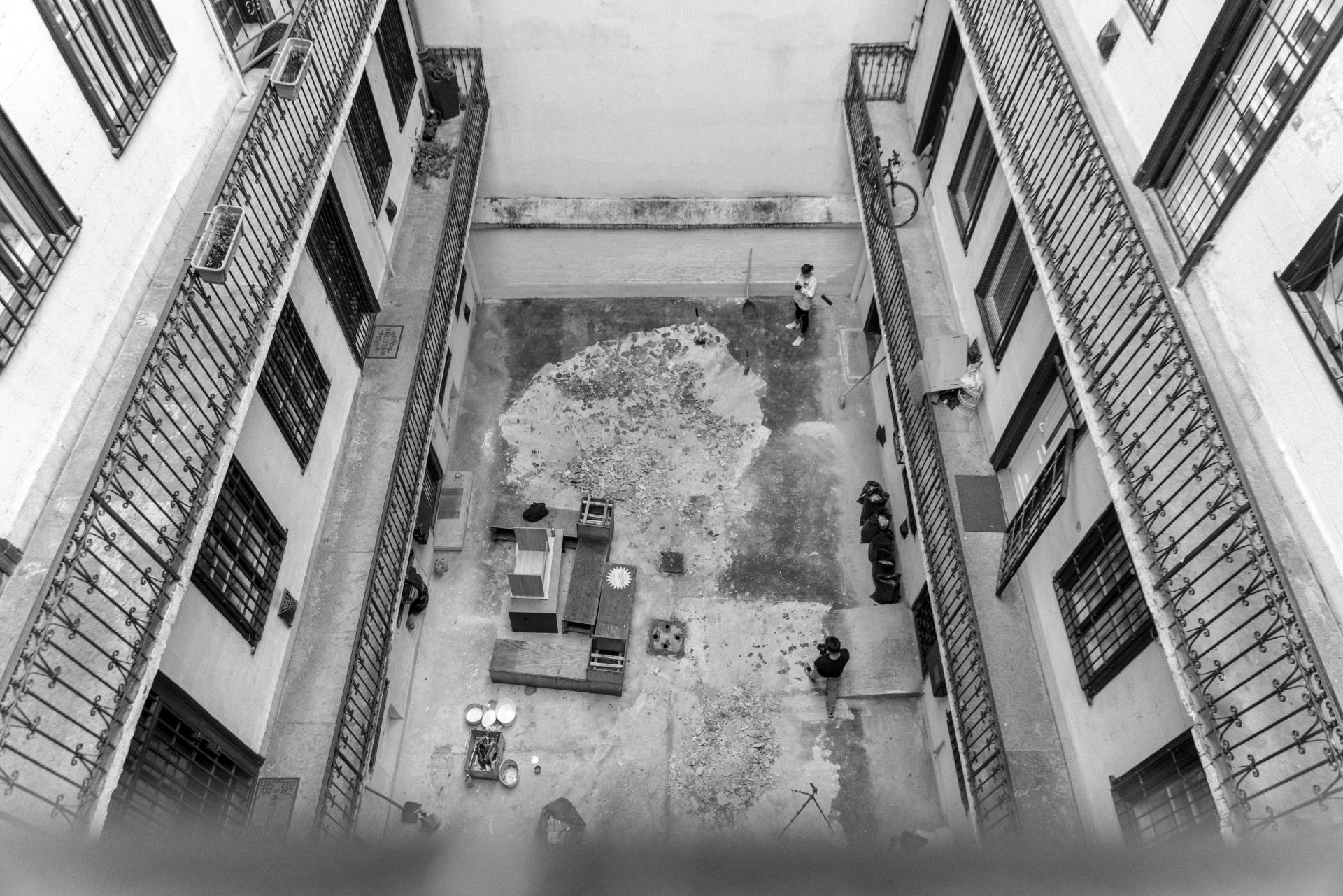 The peculiar courtyard tenement blocks with suspended corridors of Budapest became the dominant model of urban housing in late 19th century Budapest. An extremely dense pattern of these houses grew out from the ground over a short period of time. Thus each house has a small central courtyard at its center. While maximizing profit for investors and landlords, aesthetics and superdense were more important than the actual quality of spaces and living conditions. Still, the narrow courtyards often became the interface for communication between inhabitants. However, with changing lifestyles and atomization over the last century, many of these typically Eastern European interstitial spaces became desolate and neglected.