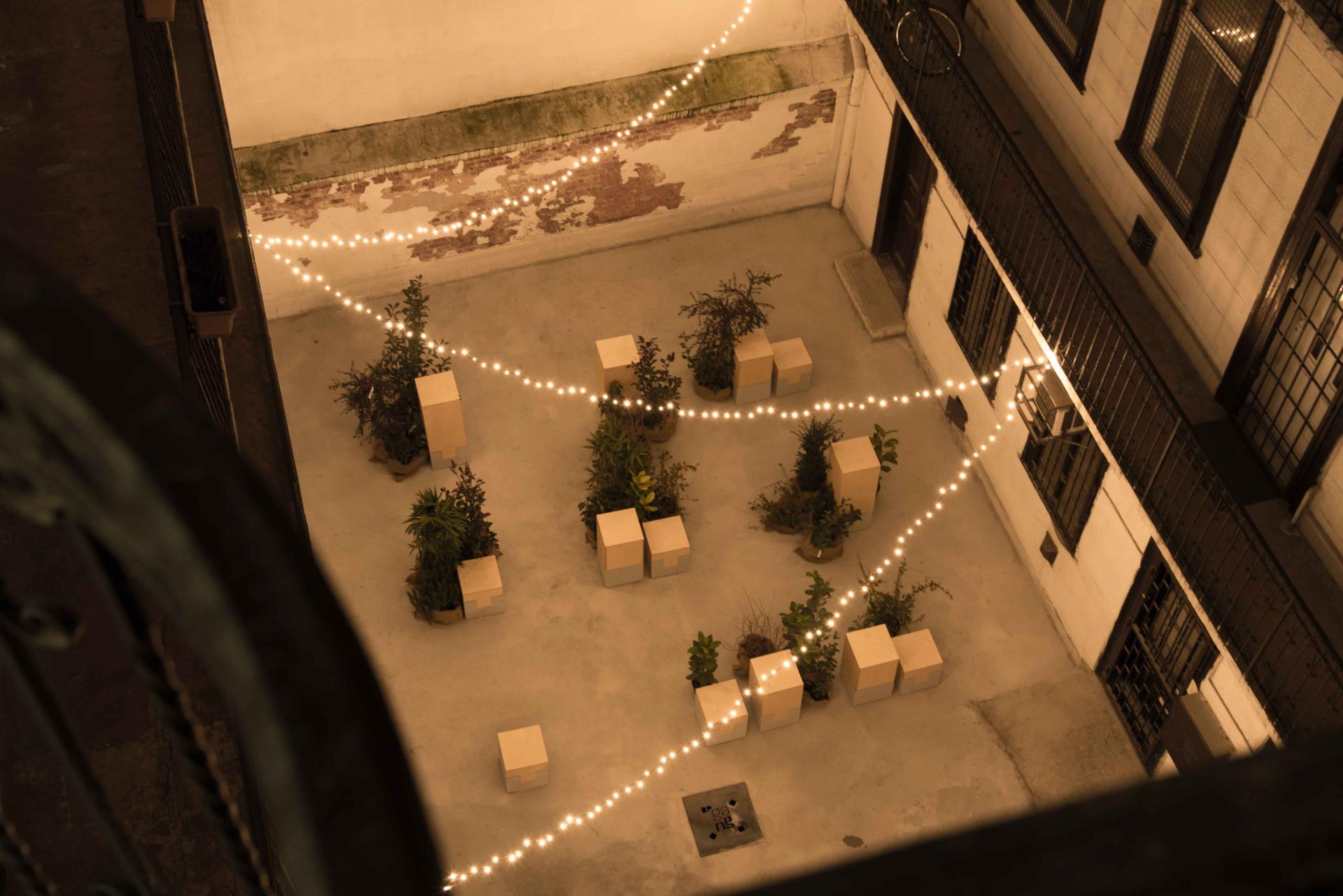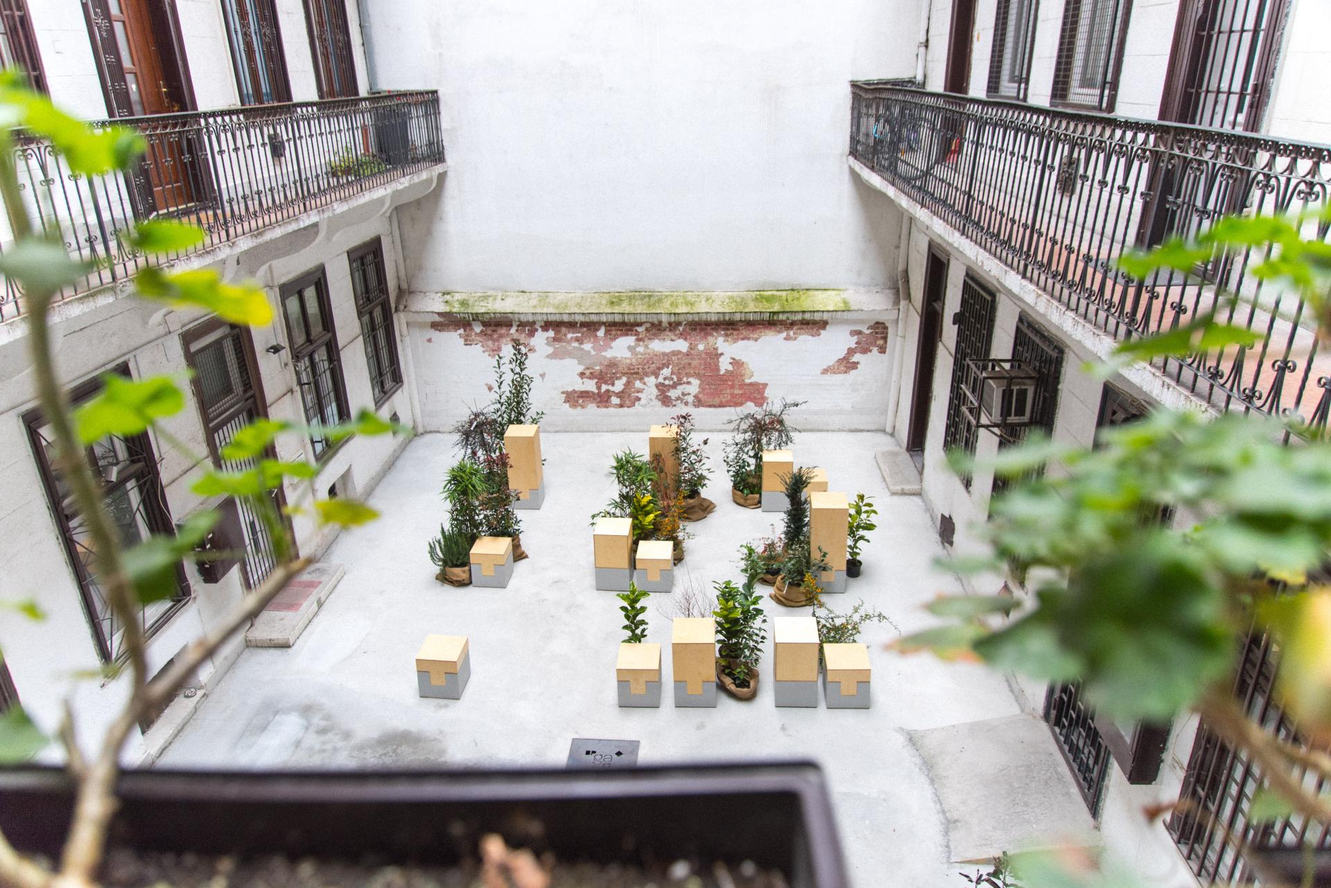 Although social distancing is necessary to reduce the spread of the disease, if not implemented correctly, such measures can also lead to the increased social isolation of people most in need of support and care. Due to the pandemic, human connection and culture are limited to our homes and their immediate environment. From singing on balconies to courtyard concerts, communities improvised new forms of interactions and rituals while sharing experiences based on mutual trust. As our location, we chose the courtyard and the suspended corridors of a typical tenement house in Budapest. By reconsidering the site, we focused on transforming the common spaces of the block into new cores of community life. Creating new daily rituals, giving an opportunity for safe gathering, and providing space and auditorium for plays and concerts were the main aspects that led us to our project. We implemented our installation in two different areas of the building. In the corridors, we placed CNC milled plywood cutty-stools and windowsills to invite the residents to use this common area as their own balcony. We divided the courtyard into a grid system and placed 20 pieces of digitally fabricated furniture at safe distance. We involved the residents in the design process.
