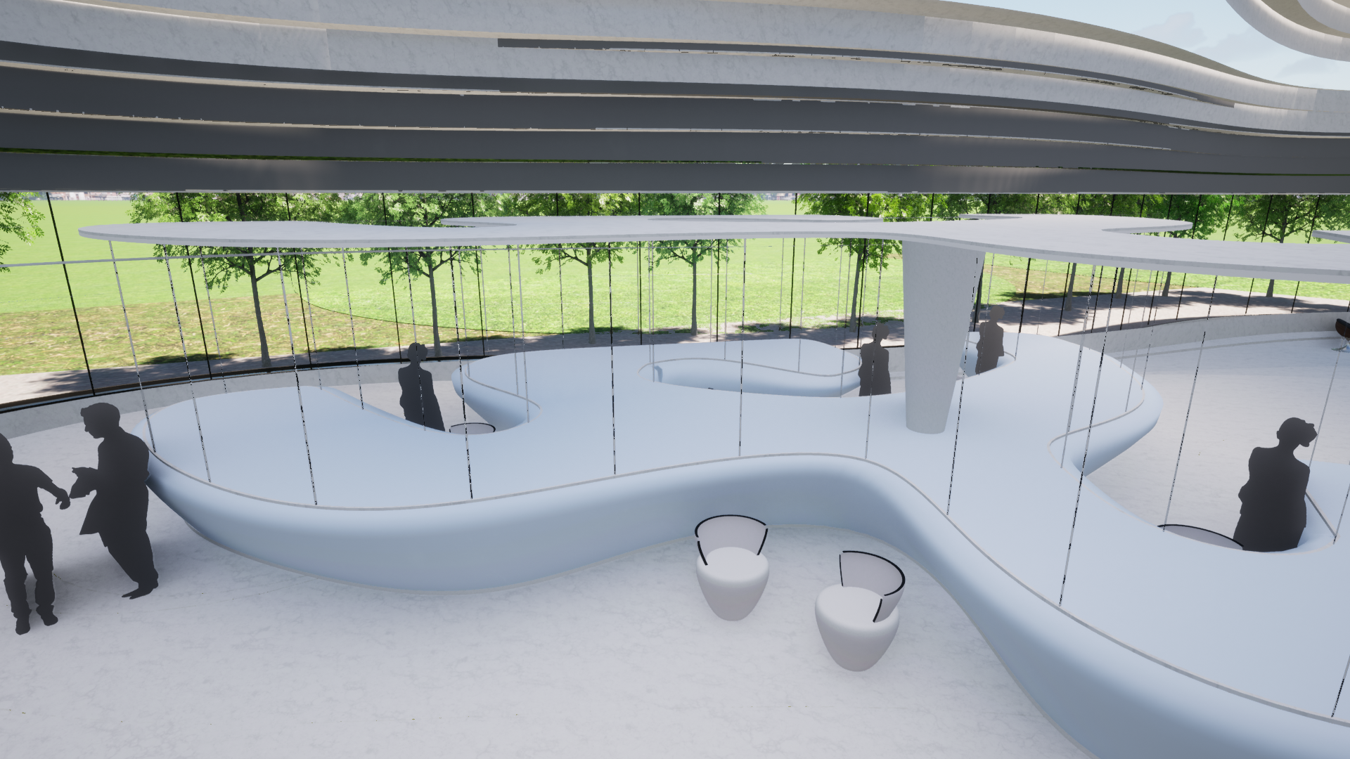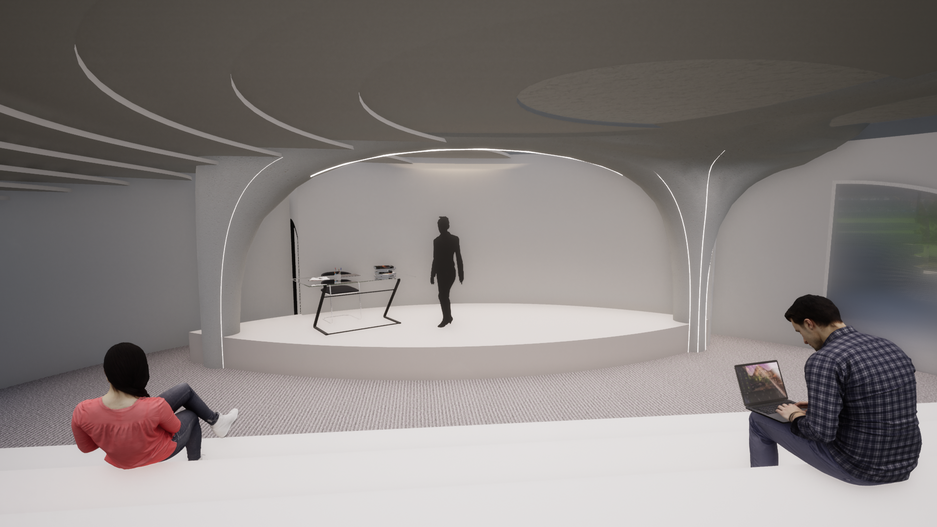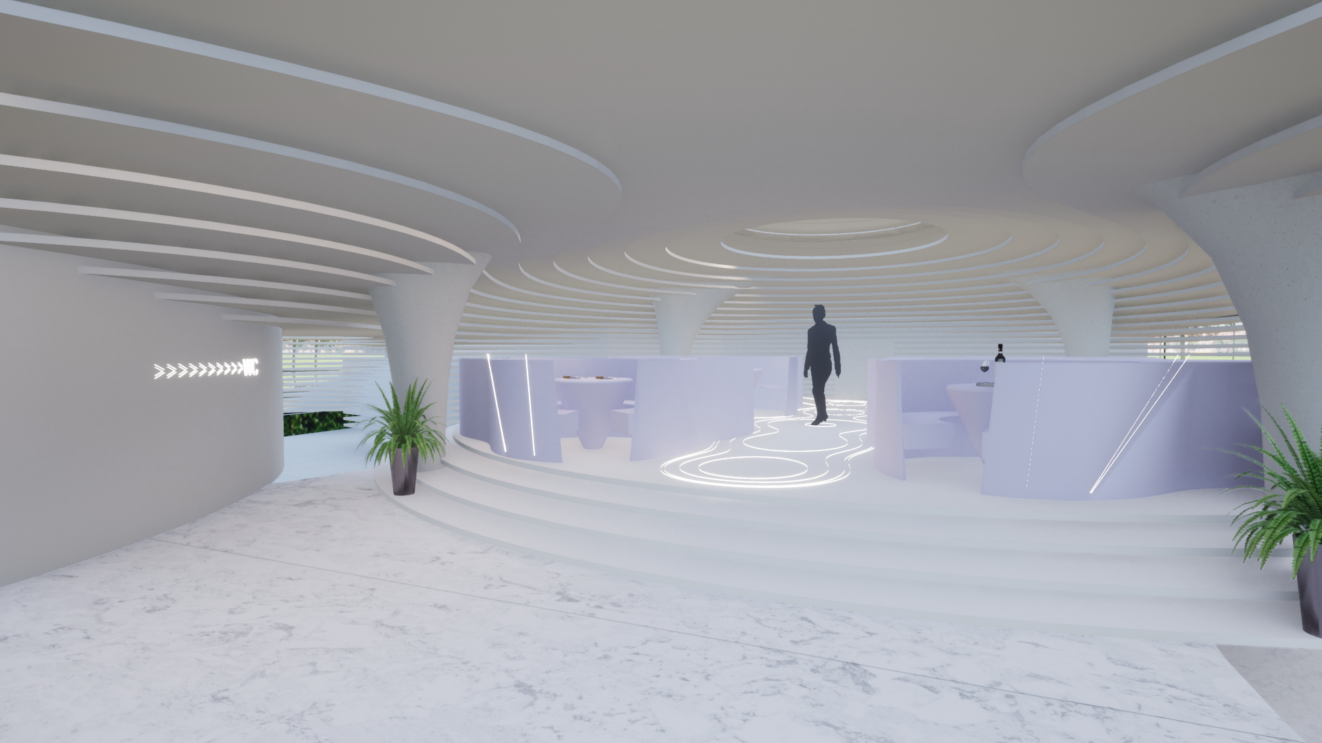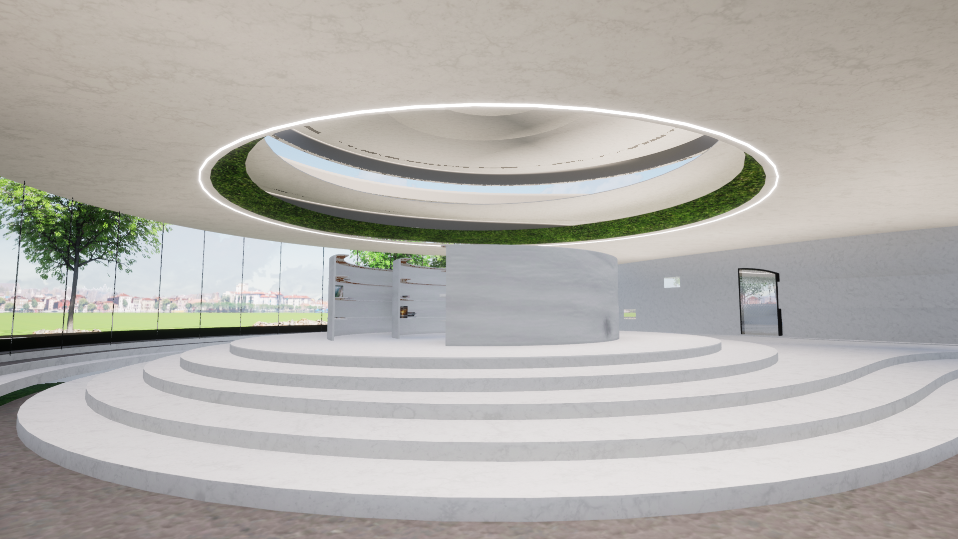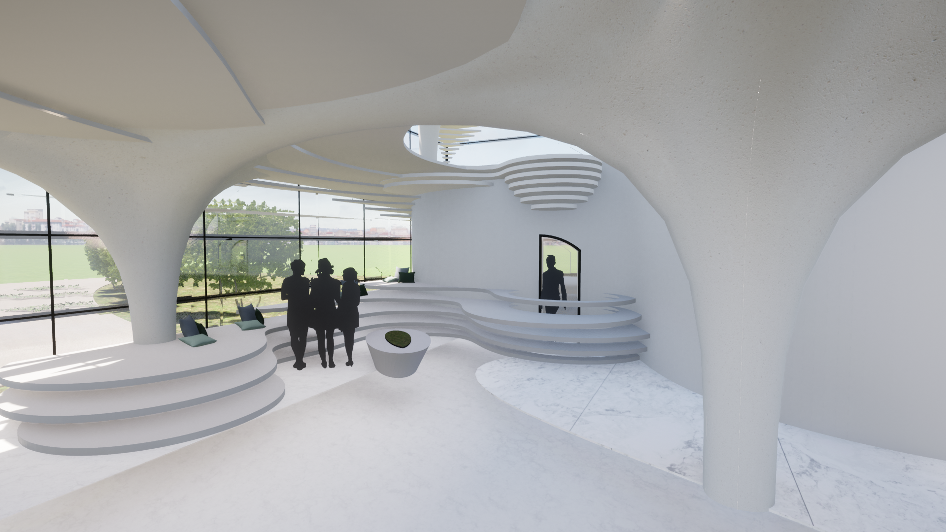 I set out with the idea of how I can aesthetically abstract the virus form and shape a space and adapt it to the new normal. I plan to have many experiences such as club rooms, design bazaar, cafe and open library. I tried to design spaces that came out of the form for each zone I determined.