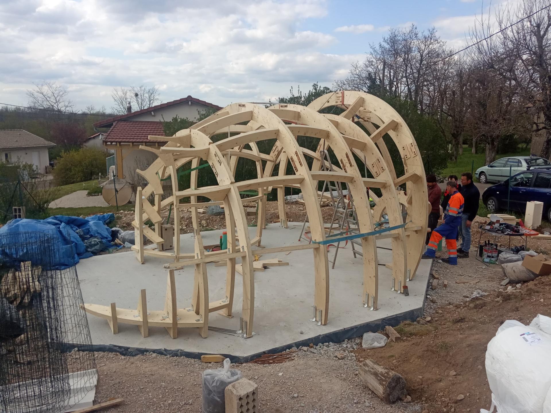 Currently only certain architectural and design firms are able to carry out these specific projects, which is therefore expensive. A completely redesigned construction principle based on the wood prototype allows for an embossed structure consisting of an assembly of ribs which, in addition to a wide variety of shapes, can be dimensioned according to the distribution of pressure points using the "Soft Kill Option" method: In addition to allowing a precise and predictive modelling of the envelope, the Soft Kill Option also concerns the internal part, inspired by the mechanisms present in organisms such as bones or trees, in order to optimise the structure as much as possible (uniform distribution of the loads on all the structure); a criterion decreasing the costs and allowing a great variety of shapes.