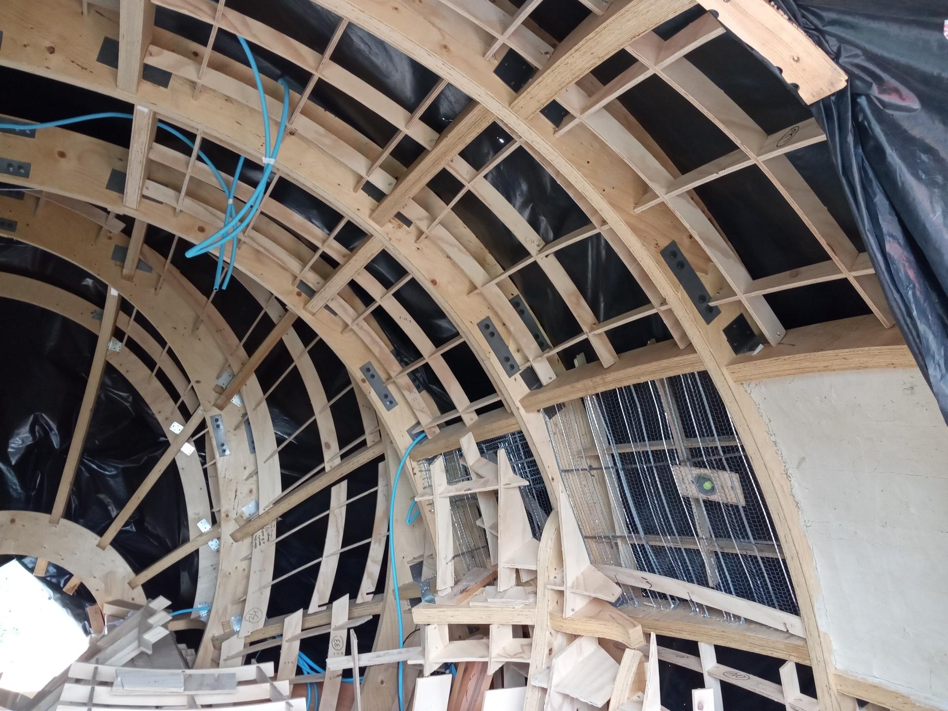 Here we consider a strategy to generate a complex architectural form whose structure is intimately linked to the material. This approach is stimulated by the Spanish architectural tradition where architectural design and engineering are not separated, but integrated into the curriculum and professional practice. We are interested in the use of this construction, the types of wood materials, the structure-envelope relationships, the tools and software used, the digital manufacturing processes involved or the types of joints used.