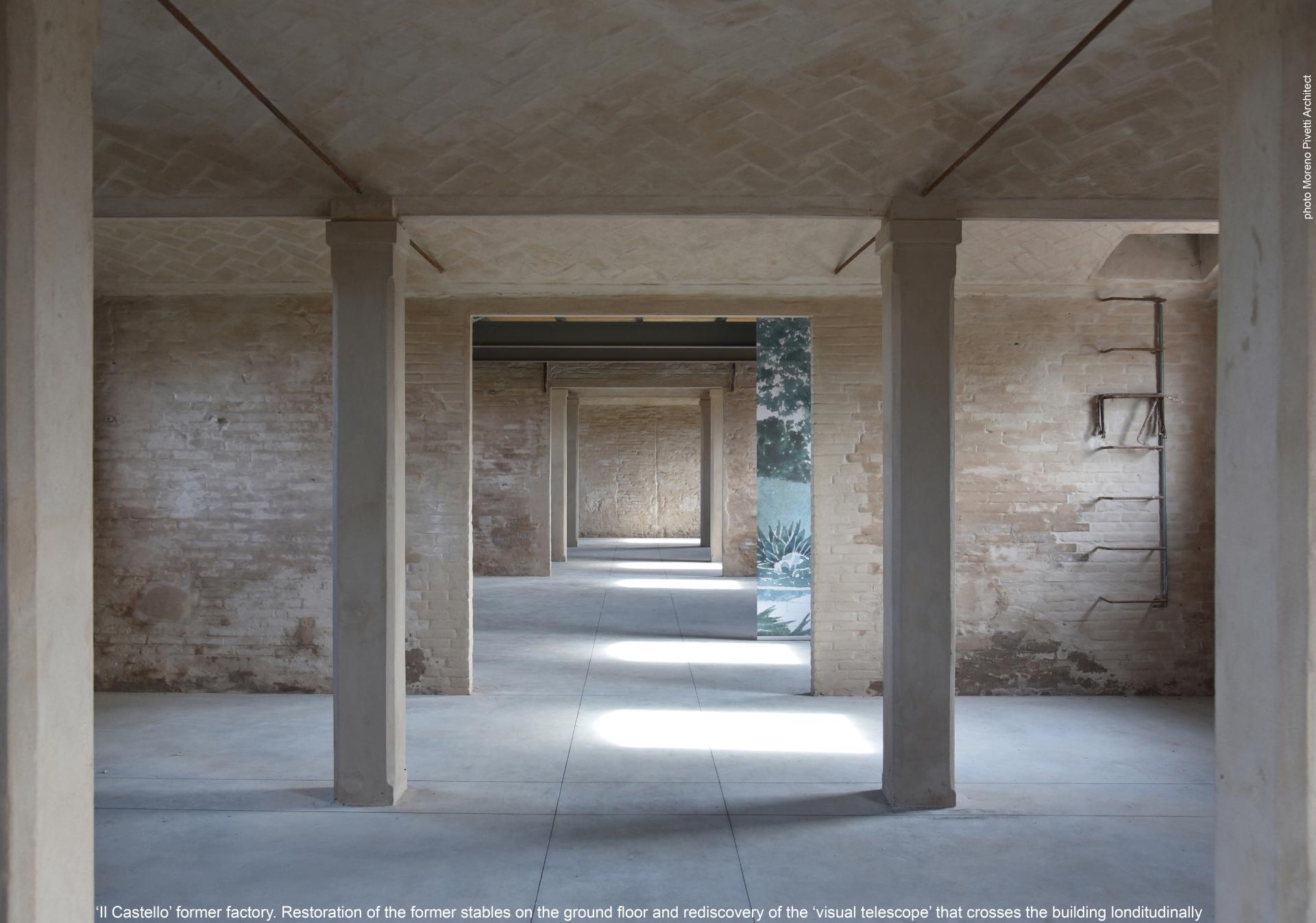 Born for the drying of tabacco and synthesis of a landscape intended for work, the ancient factory called ‘Il Castello’ is recovered for new uses, opening up to the Community as a court of collective knowledge, theater of public-private synergies aimed at regenerating the land over which it dominates. Respect for environmental values has led the intervention to develop almost exclusively inside the building, reconfigured in order to restore its semantic identity in the contemporary dimension.
