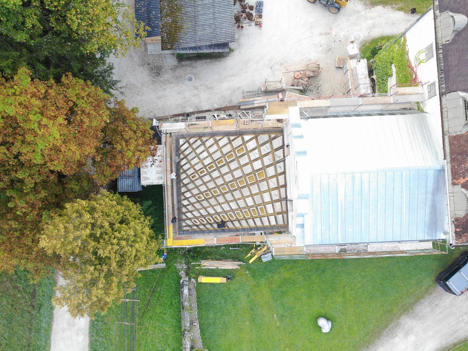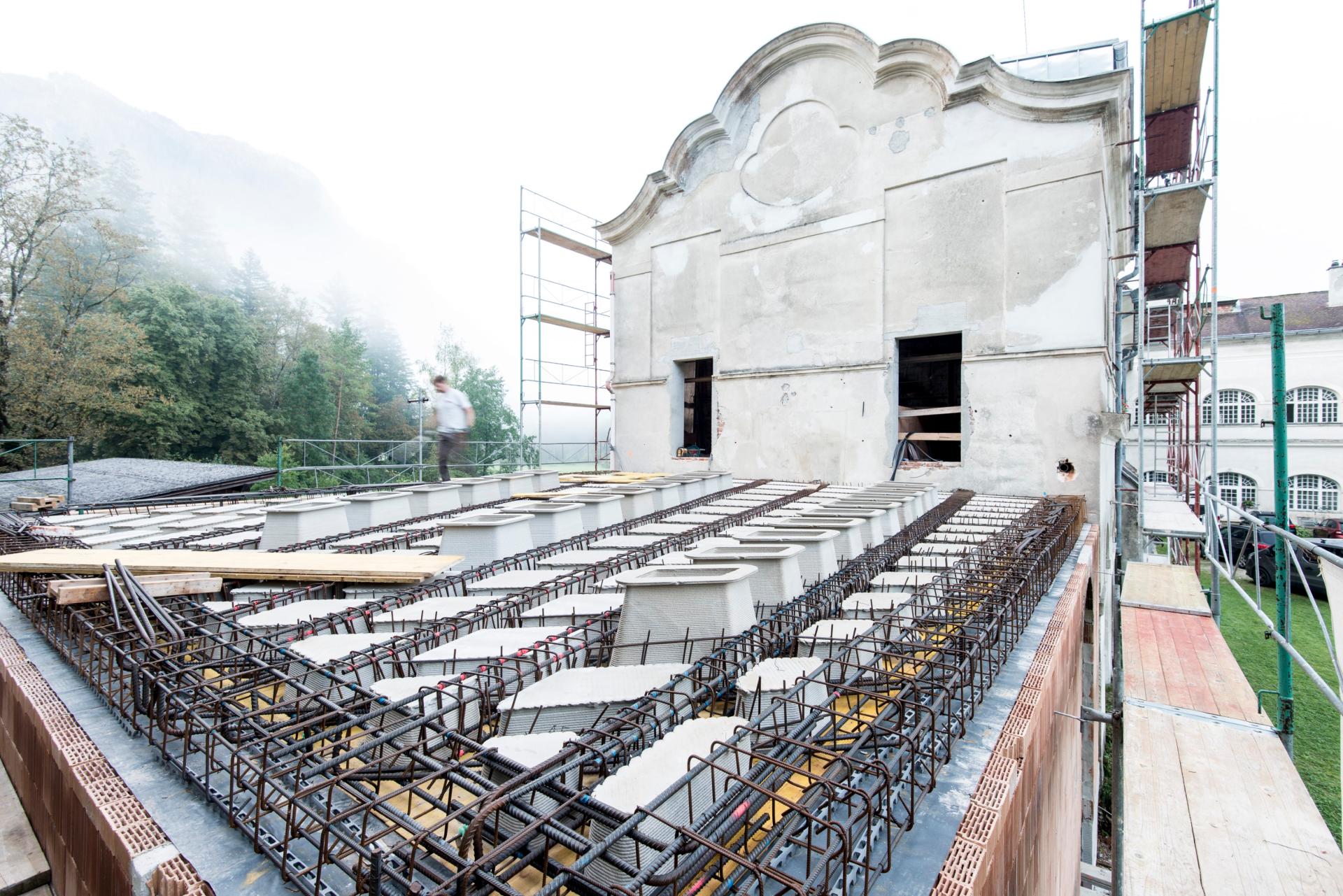 In April 2020, the ITE was commissioned to apply this new construction method to a 100-square-metre roof that covered an atelier at Seehof Castle in Lunz am See. The project involved the conceptual design, developed in cooperation with Hans Kupelwieser, the complete execution and detailed planning as well as the realisation of the actual construction using 130 different 3D-printed voids.