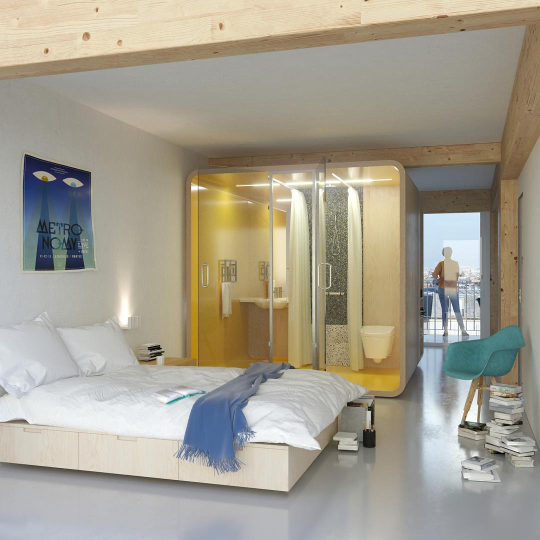 The 3rd step of the project was to prototype to full scale the concept including the interface with the wooden structure. Then the product concept and offering were designed in order to be presented to French building developers.