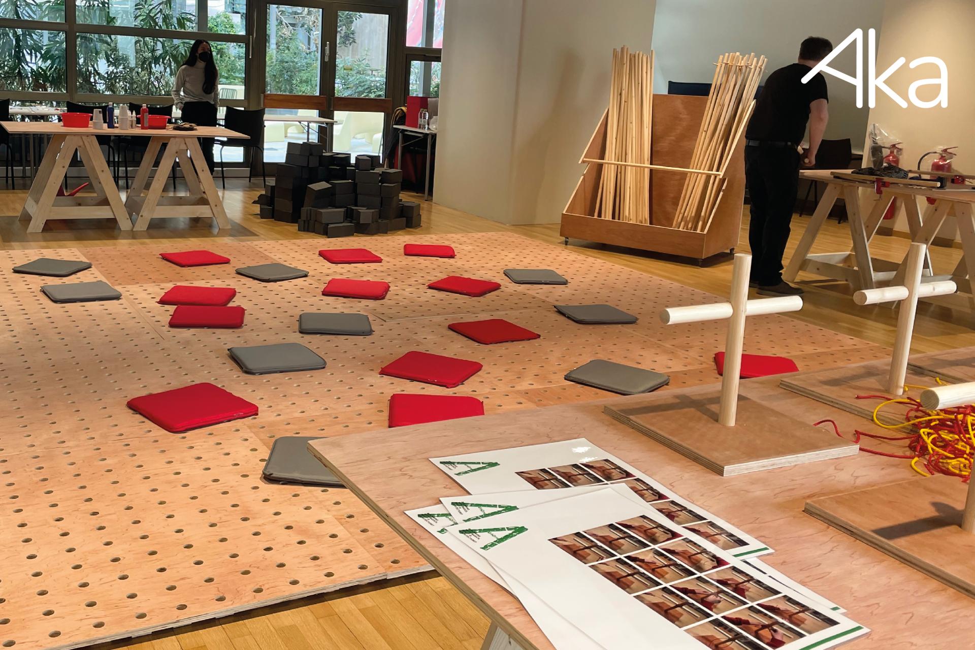 Architecture has a significant impact on the environment. Buildings consume tremendous amounts of resources in order to be planned, built, used and demolished. Increased urbanisation in tandem with shorter life-spans of the buildings erected have led to shortages of essential resources such as sand and water while the landfill produced by demolition has reached hitherto unknown levels of contamination. Aka | Architecture Kids Athens raises awareness for this problematic among children and young people with the aim to foster a more sustainable architectural future. How we do this is best illustrated by an example: Together with the Goethe-Institut in Athens, we have organized an interactive installation with the title “Beginning with Basics. What is Architecture?” The installation is designed for children 9-14 years old and took place free of charge for school classes and the general public both at the Goethe-Institut and the Romantso Cultural Centre in Athens in 2022.