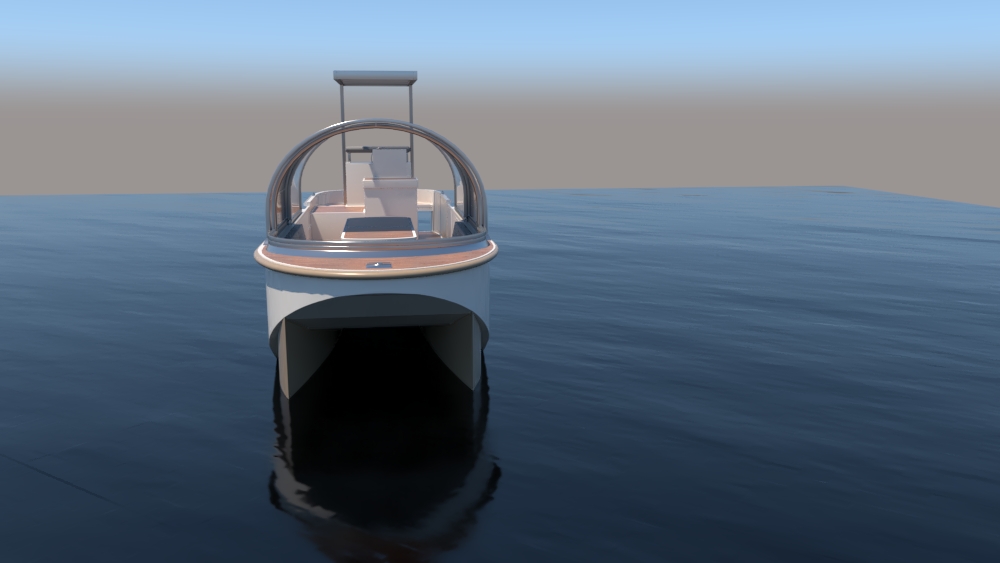The innovative character of BEPI also addresses the challenge of two substantial problems of water mobility: air pollution, with combustion engines contributing heavily to the emission of CO2 into the air; and wave motion generated by semi-displacement hulls and their excessive speeds, which erodes the precious sandbar. So, BEPI has a multiple hull, the catamaran has a very shallow draught, and therefore causes very little wash. The design is ‘wave-eating’: the unique asymmetry of the hulls produces a ‘Venturi effect’, capable of further increasing sailing efficiency and zeroing out wave motion.