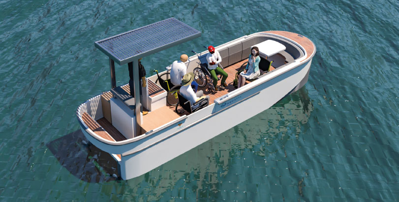 BEPI has been designed by a group of Venetian professionals and companies, overturning the conventional approach to the issue of accessibility; in fact, not only architectural barriers will be broken down, but also psychological ones. Accessibility on board is guaranteed without complicated and expensive devices for many wheelchair-bound guests, putting everyone, "able" and "disabled," on an equal footing. The innovative and asymmetrical design allows assisted access to all from a range of the shore heights, either from floating docks or from the Venetian banks. In addition, the multi-hull configuration and electric motorization will also lower waves and pollution. The opening roof and large living area allow for the sheltered and easy transportation of people and wheelchairs.