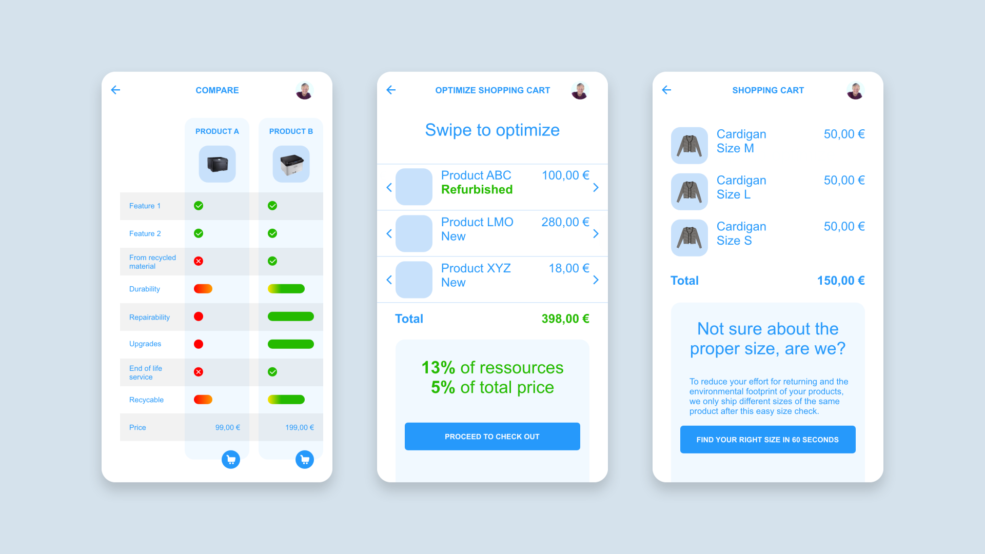 The key objective of the library in terms of sustainability is the acceleration of the development and adaption of circular services. Example: The shopping cart of online shops is one of the most powerful UX design pattern of the linear economy. It has been optimized over the last twenty years and works perfectly to support easy, fast transaction and pushes cross- and upselling. No UX designer develops a new shopping cart, but uses existing patterns and adapts them for his purposes and the brand he is working for. This makes it also easier for customers to use the cart, as they have a consistent experience across different platforms. For the circular economy, we do not have such patterns, and we do not have twenty years to establish them. The Circular Experience Library is exemplary in solving this problem by offering free components for fast development and prototyping.