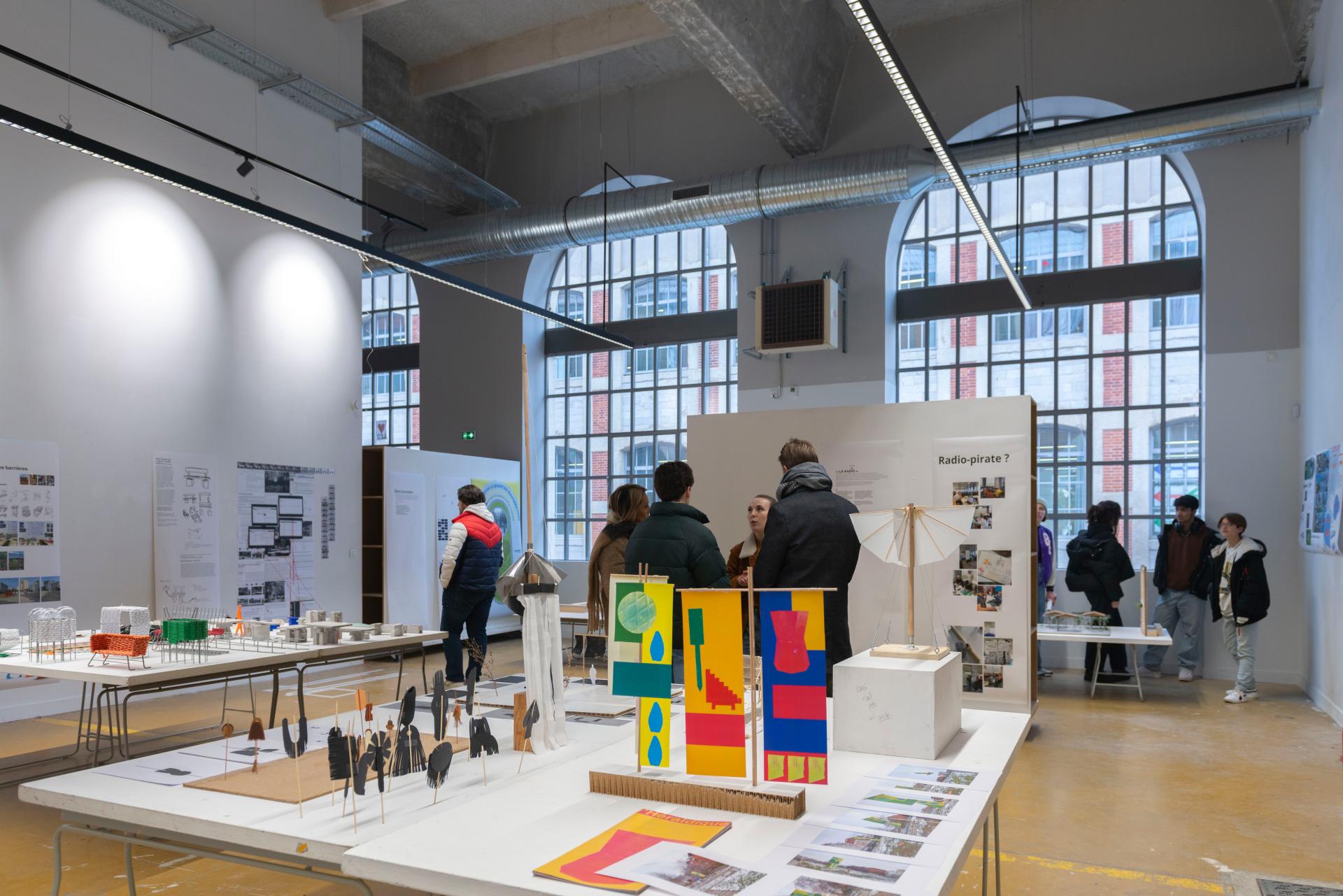 Invitation to inhabitants, teachers, students to discover a first stage of pedagogical project: a joyful and experimental exhibition and party in the heart of what should become the shared spaces of the Manufacture's student community (Invitation in annexe)