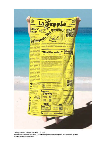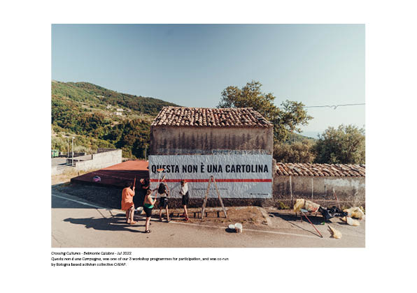 Prior to Crossing Cultures 2022, we held a Tavolate (round-table discussion) for community engagement and inquiry, to share and give substance to our research and direction. Less about developing designs or programmes of activity, more to discuss were the bigger questions of: what, why, and how? Thoughts, histories, relationships and narratives are explored in this way. With this, we use these ideas and moments to inform the themes or artistic directions of workshops. “Non-work”, “Searching inhabitants of dynamic borders” that can “Deform” to and “Perform” within the territory, became subversive slogans used to both build-on knowledge gained and propagate new and hybrid reasons and methods to create action and commentate on common spaces in the context of rural/urban relationships.