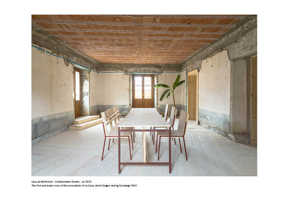 The materiality of our participatory interventions, co-run with architecture collective Orrizontale, primarily use wood, metal, and graphic work. Our Belmondo Experience programme draws on these natural and artistic assets, by offering co-living and co-working to promote the vitality of the Casa and the village. Importantly, we operate beyond simple touristic gain, by overlapping and mediating collaboration with other actors present, participating this year in joining farmers, hunters, craft technique demonstrations, food and art practice.